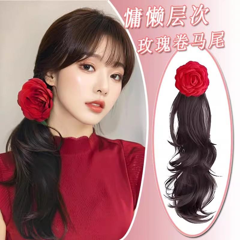 Sweet slightly curly ponytail clip style [brown black] 45cm