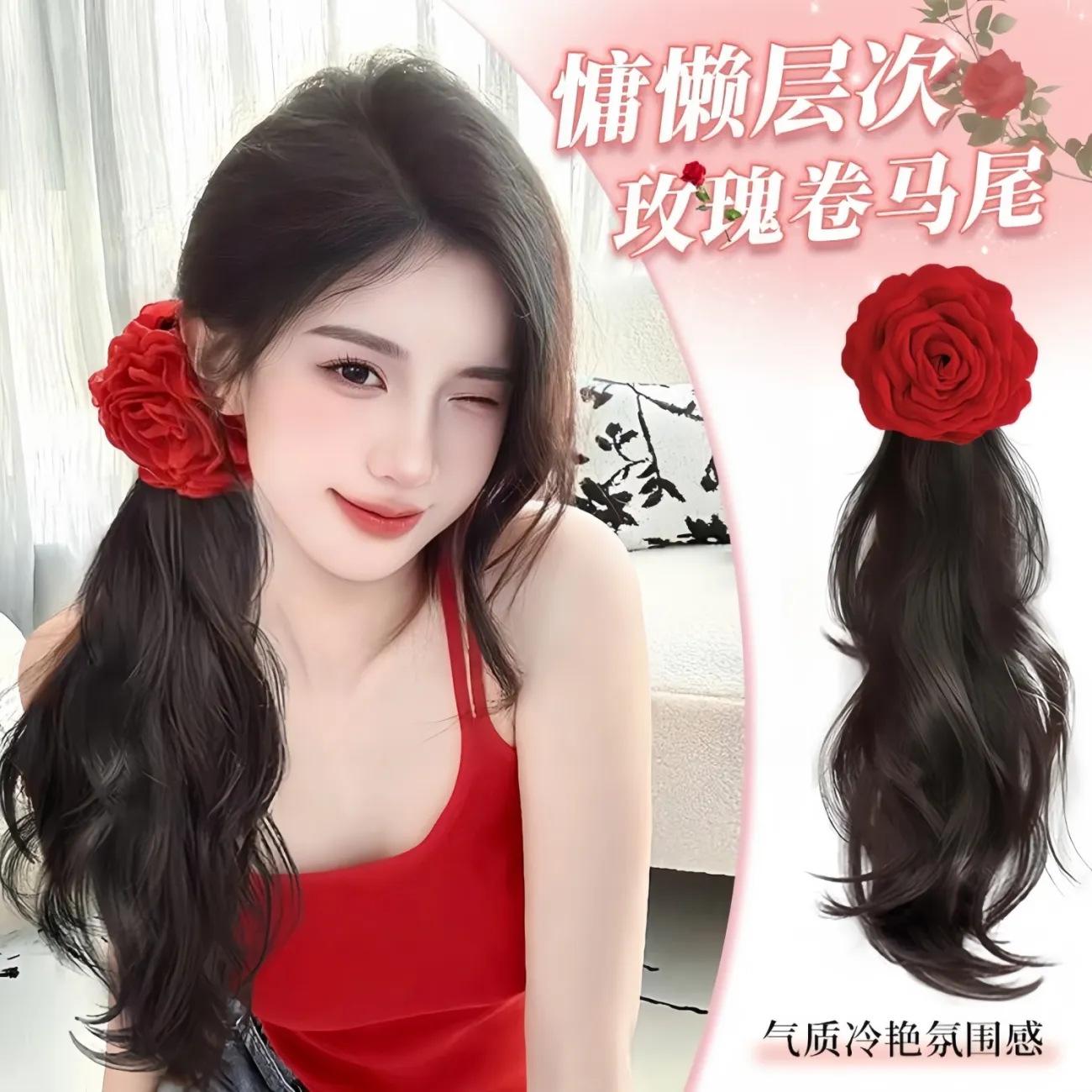 Peluca de Cola de Caballo con Clip para Mujeres, Cabello Largo Ligeramente Rizado, Postizo de Aspecto Natural, Cola de Caballo Larga, Cabello Realista, Trenzas Falsas, Cola de Caballo Alta