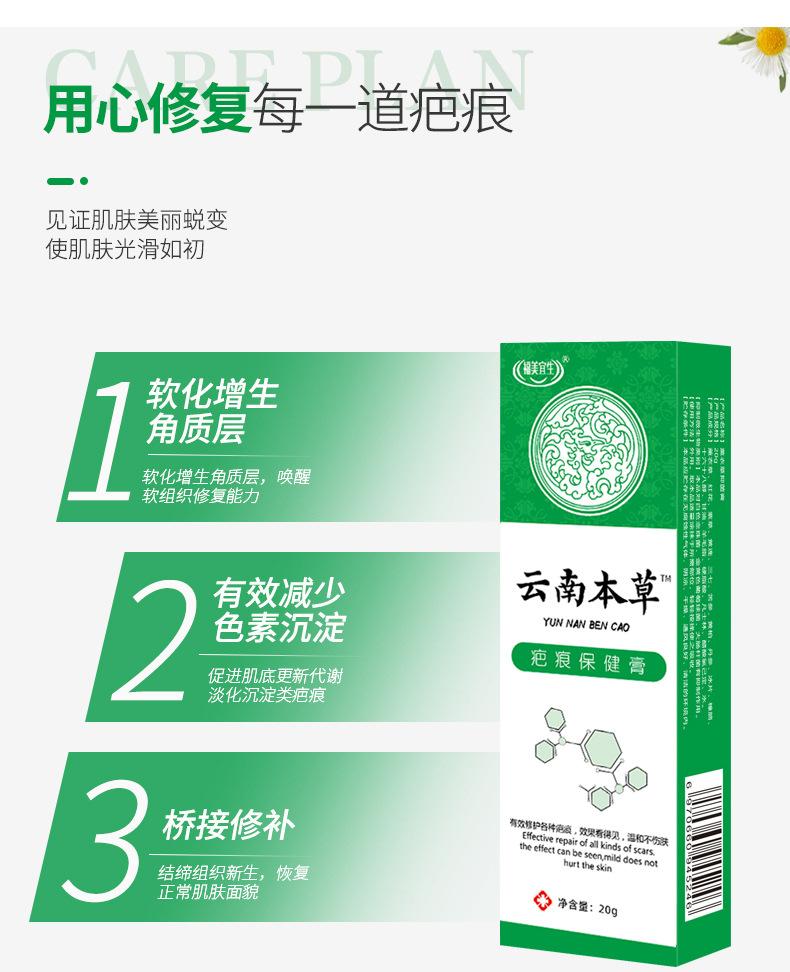 Crema Herbal Yunnan para Reparación de Cicatrices por Cesárea, Protuberancias, Marcas de Acné, Cicatrices por Caídas, Cicatrices Ligeras, Crema para Cuidado Externo de la Salud