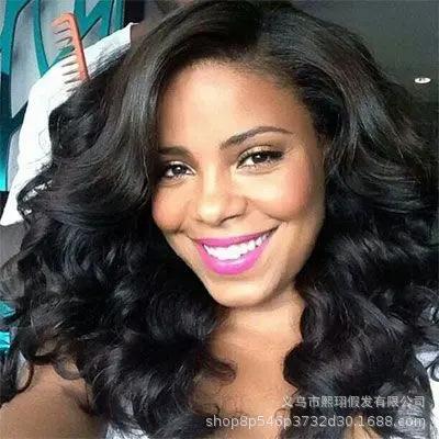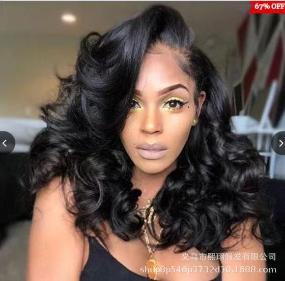 Peluca europea y americana para mujer, nuevo comercio exterior, cabello rizado mediano largo, onda grande, fibra química, tocado de moda, en stock, venta al por mayor, Pelucas