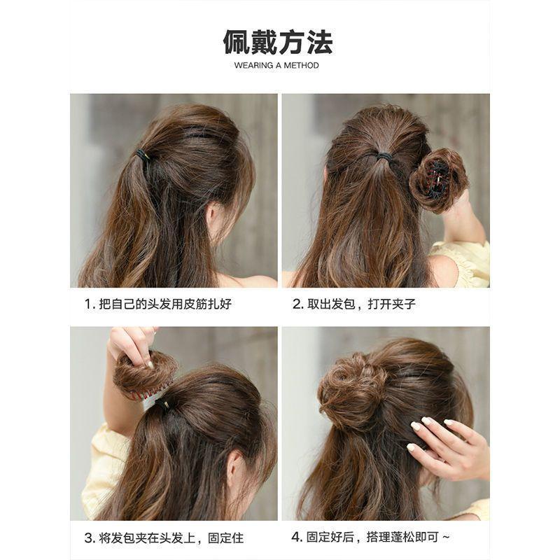 Peluca femenina moño clip para el cabello bolsa de pelo flor soporte media bola cabello artificial esponjoso natural rizador peluca bolsa de pelo