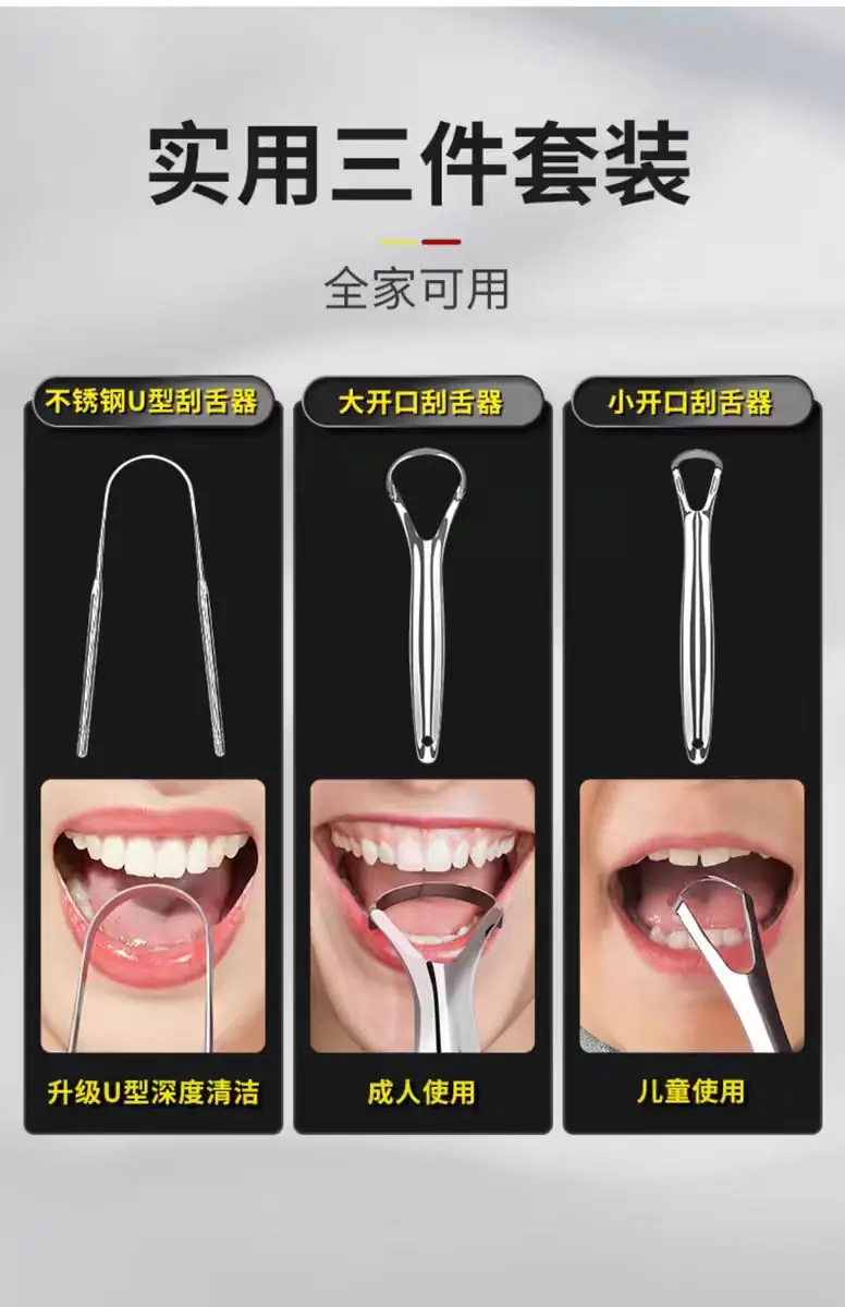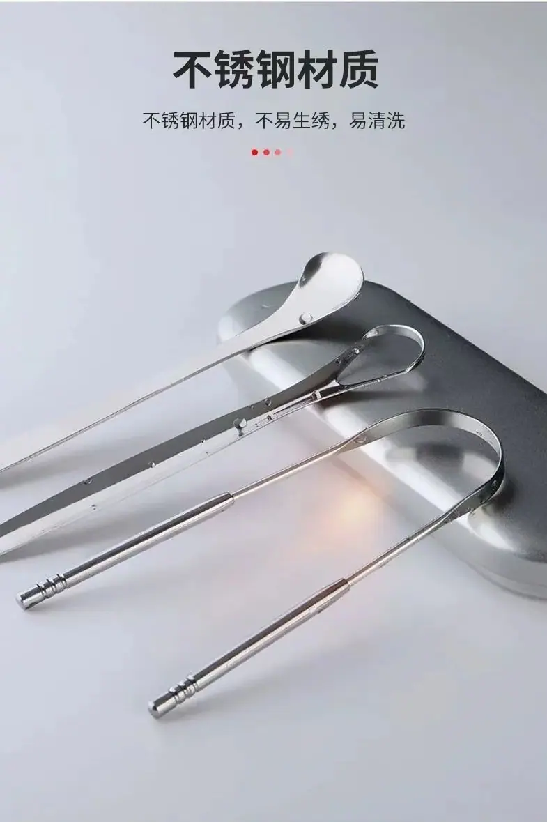 Tongue scraper iron box set of three, Tongue scraper iron box set of two, 2 double-sided tongue scrapers + sma...