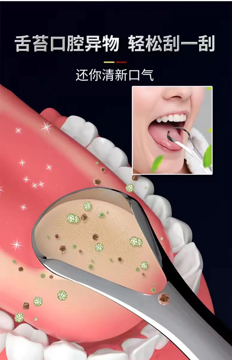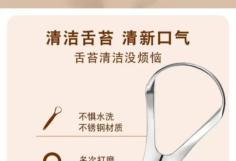 Herramienta de acero inoxidable para el recubrimiento lingual, limpiador lingual, raspador lingual, cepillo lingual, herramienta de limpieza para el cuidado bucal personal.