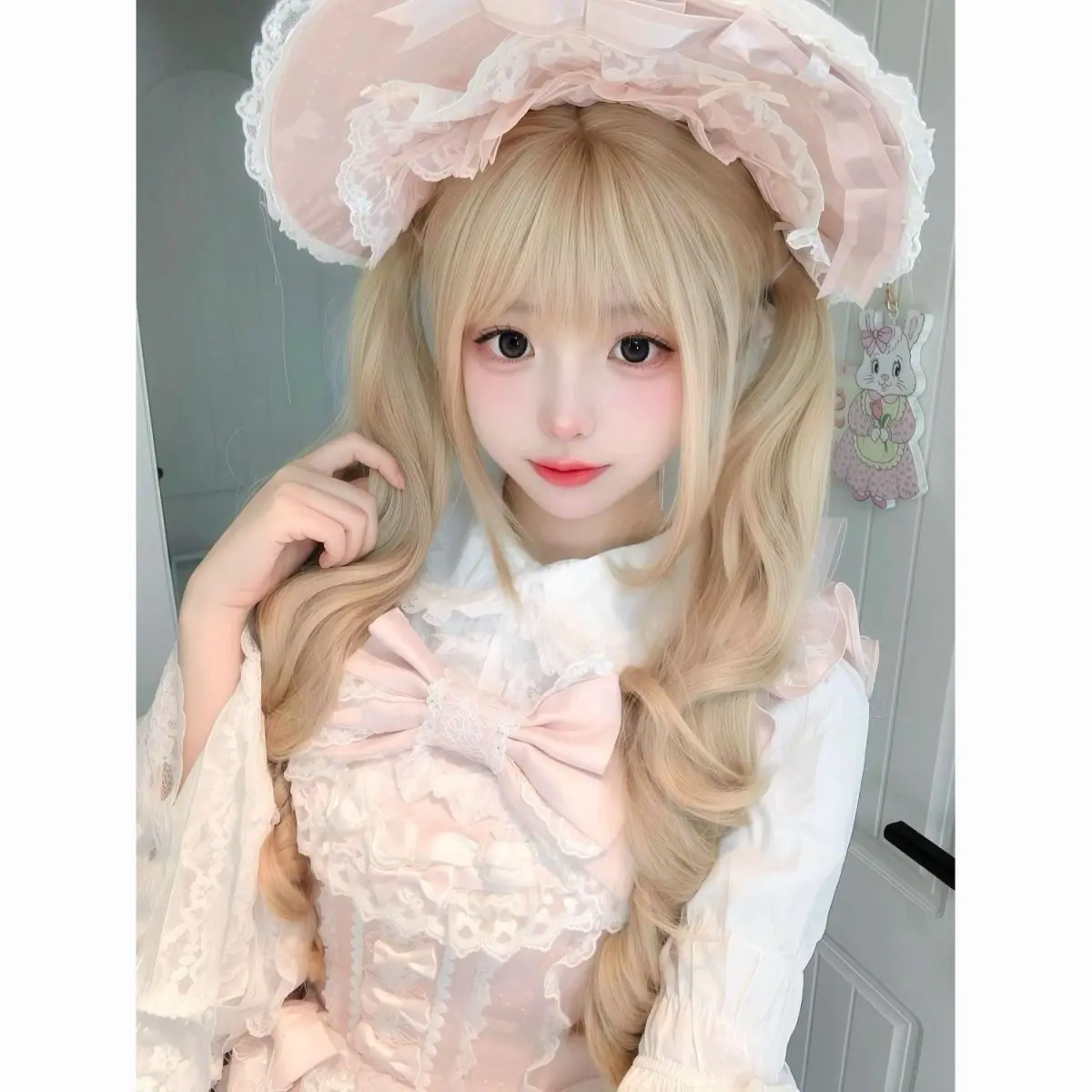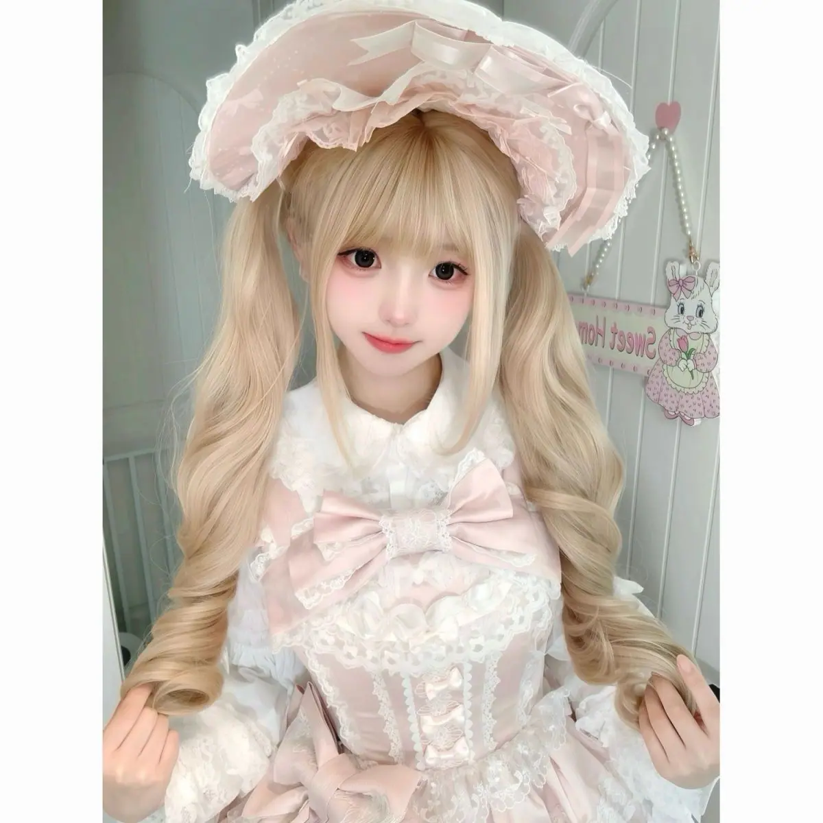 Peluca Femenina Cobertura Completa Shaluo Blanco Natural Dorado Doble Cola de Caballo con Flequillo Nueva Moda Rizos Romanos Peluca Completa