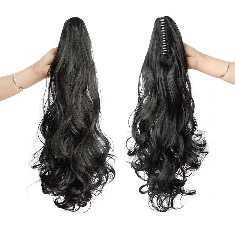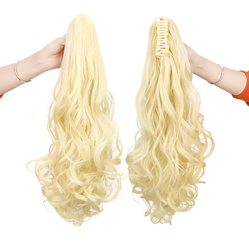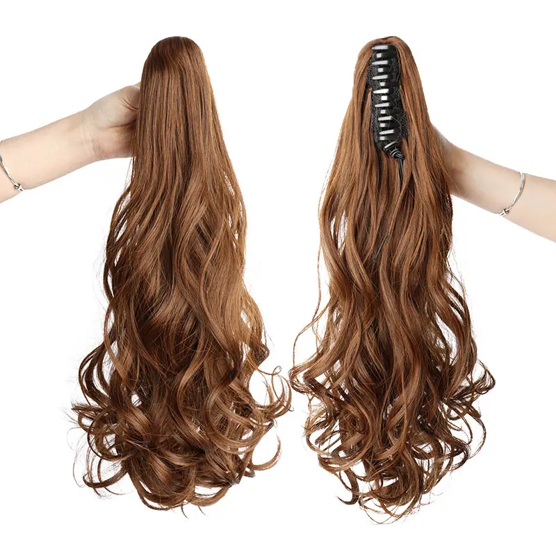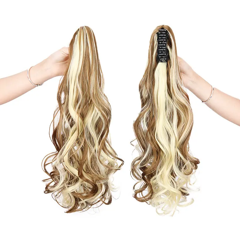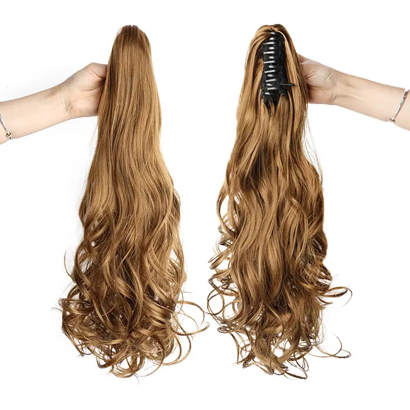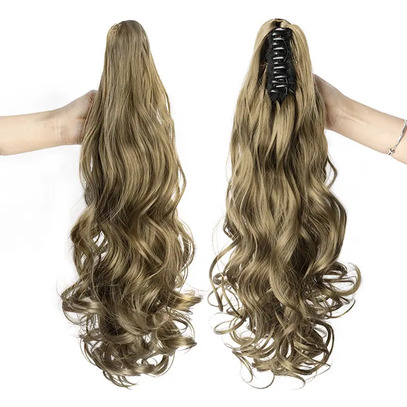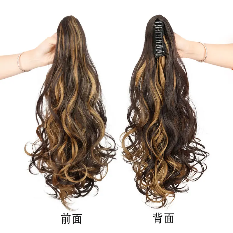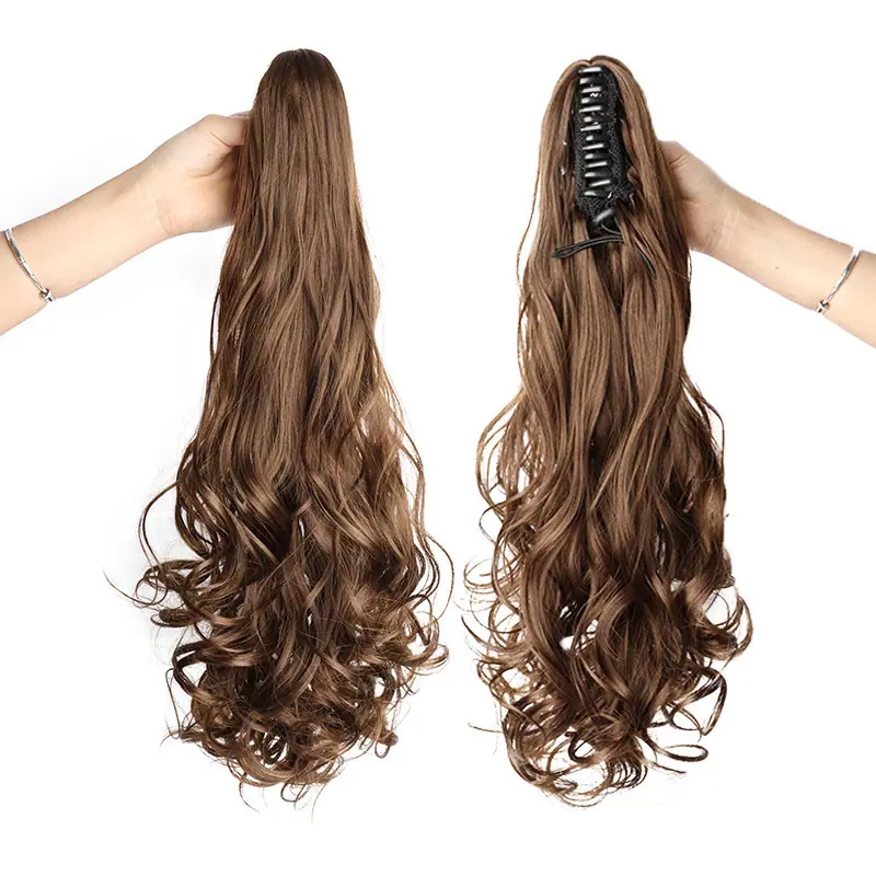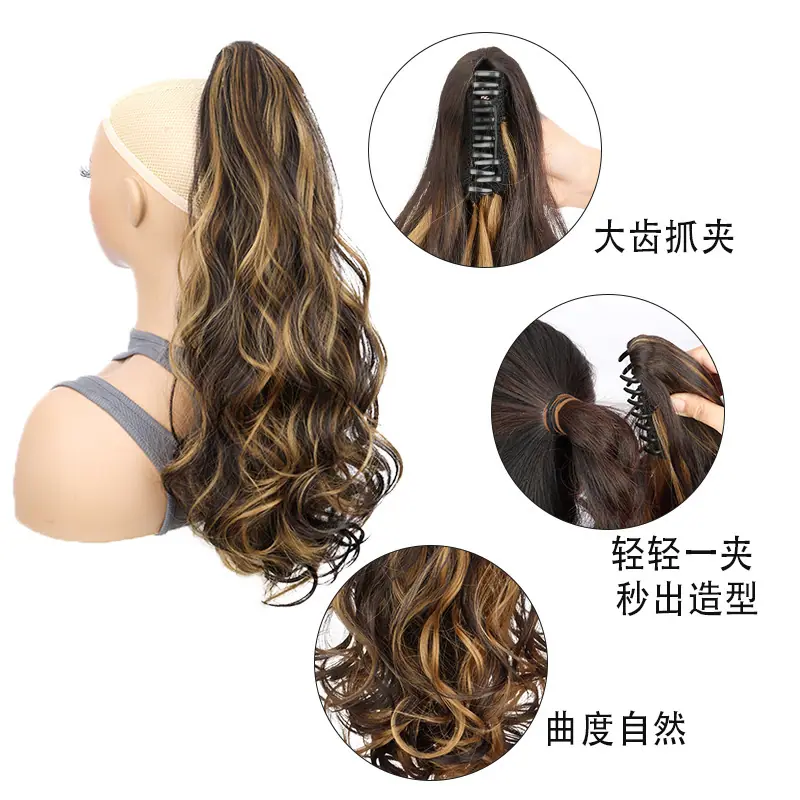 Peluca de cola de caballo transfronteriza europea y americana Larga Rizada Ondulada Pinza Grande Peluca de Fibra de Alta Temperatura para Mujer Peluca de Cola de Caballo Postiza Natural