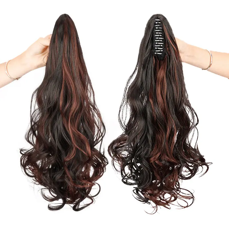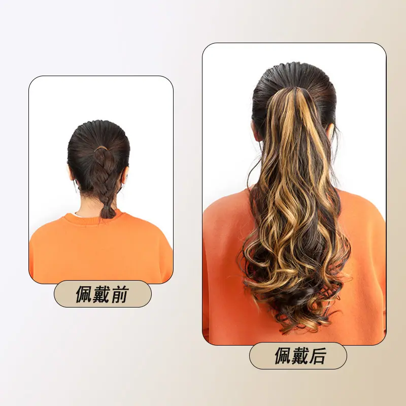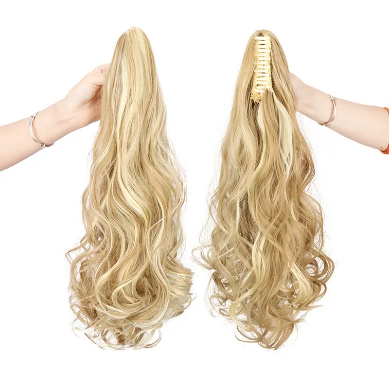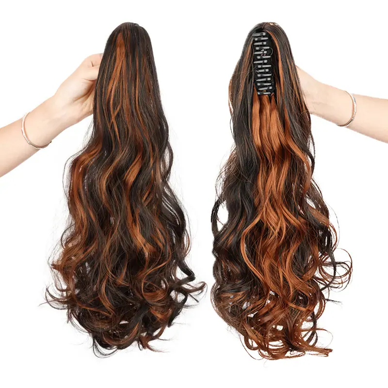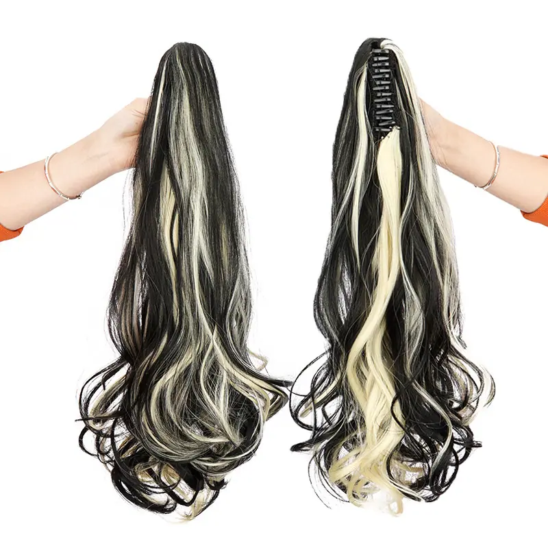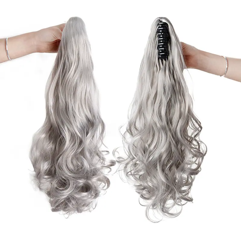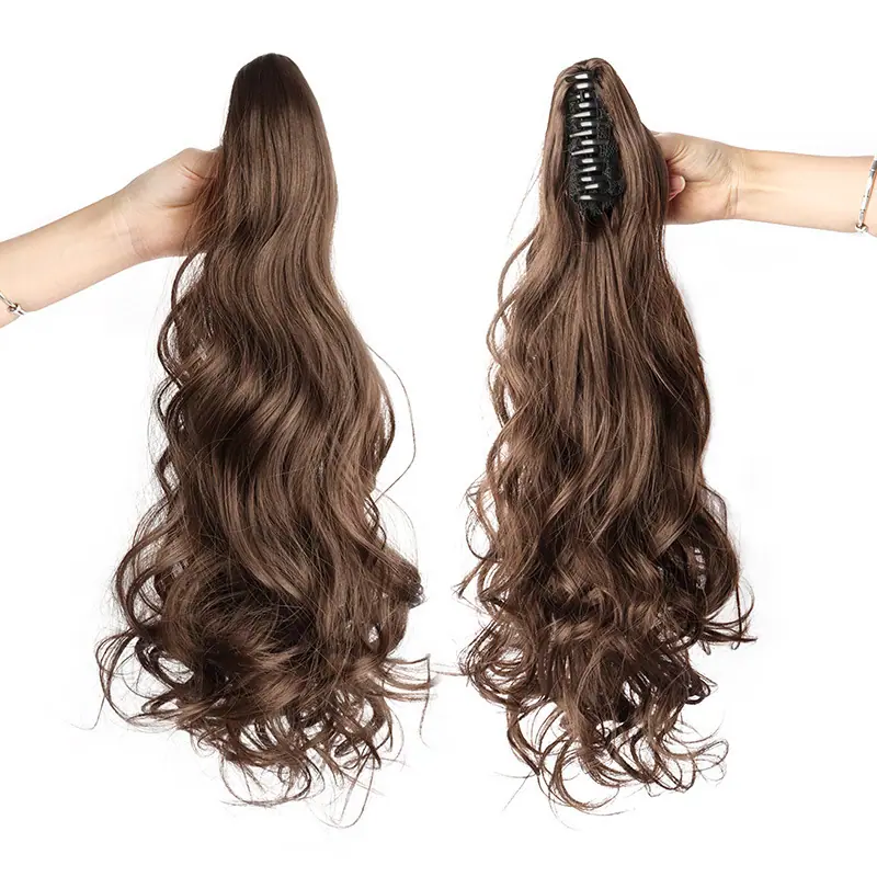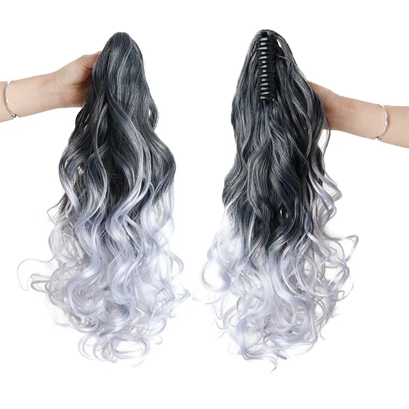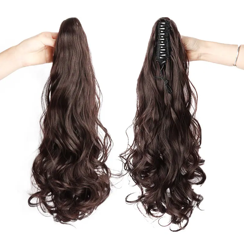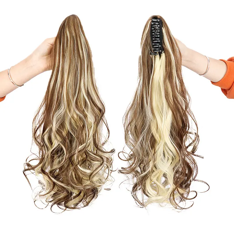 Peluca de cola de caballo transfronteriza europea y americana Larga Rizada Ondulada Pinza Grande Peluca de Fibra de Alta Temperatura para Mujer Peluca de Cola de Caballo Postiza Natural