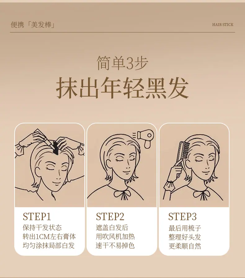Ouyu nuevo stick para peinar el cabello desechable pluma stick tinte temporal para cubrir canas crema tinte para el cabello tubo cuadrado negro stick tinte para el cabello