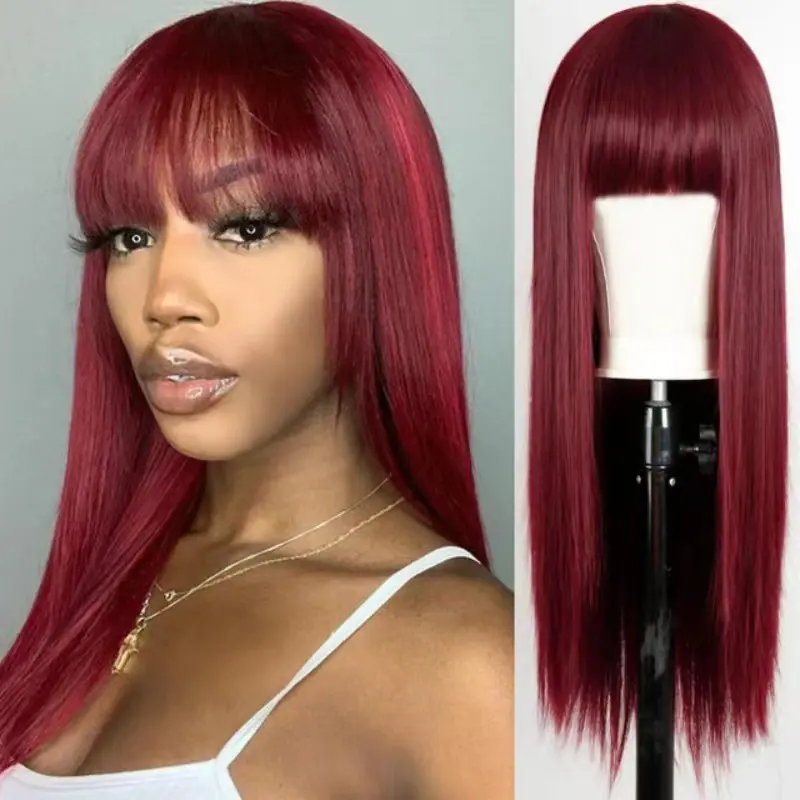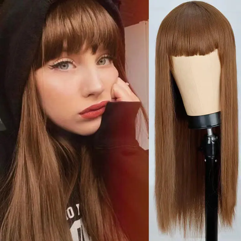 Peluca para mujer cabello largo lacio moda europea y americana Amazon fibra química tocado comercio exterior transfronterizo AliExpress flequillo recto negro cabello largo
