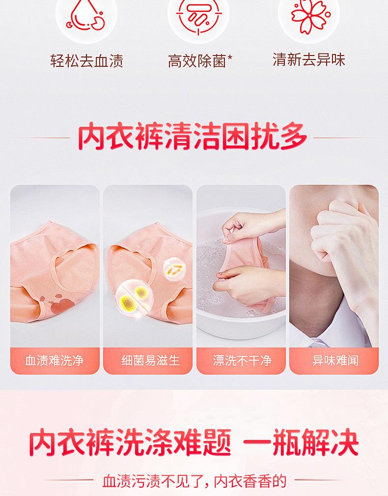 Detergente para Ropa Íntima Personalizado 300g Proteasa Antibacteriano Esterilización para Quitar Manchas de Sangre Procesamiento Íntimo Líquido de Limpieza Especial para Mujeres