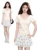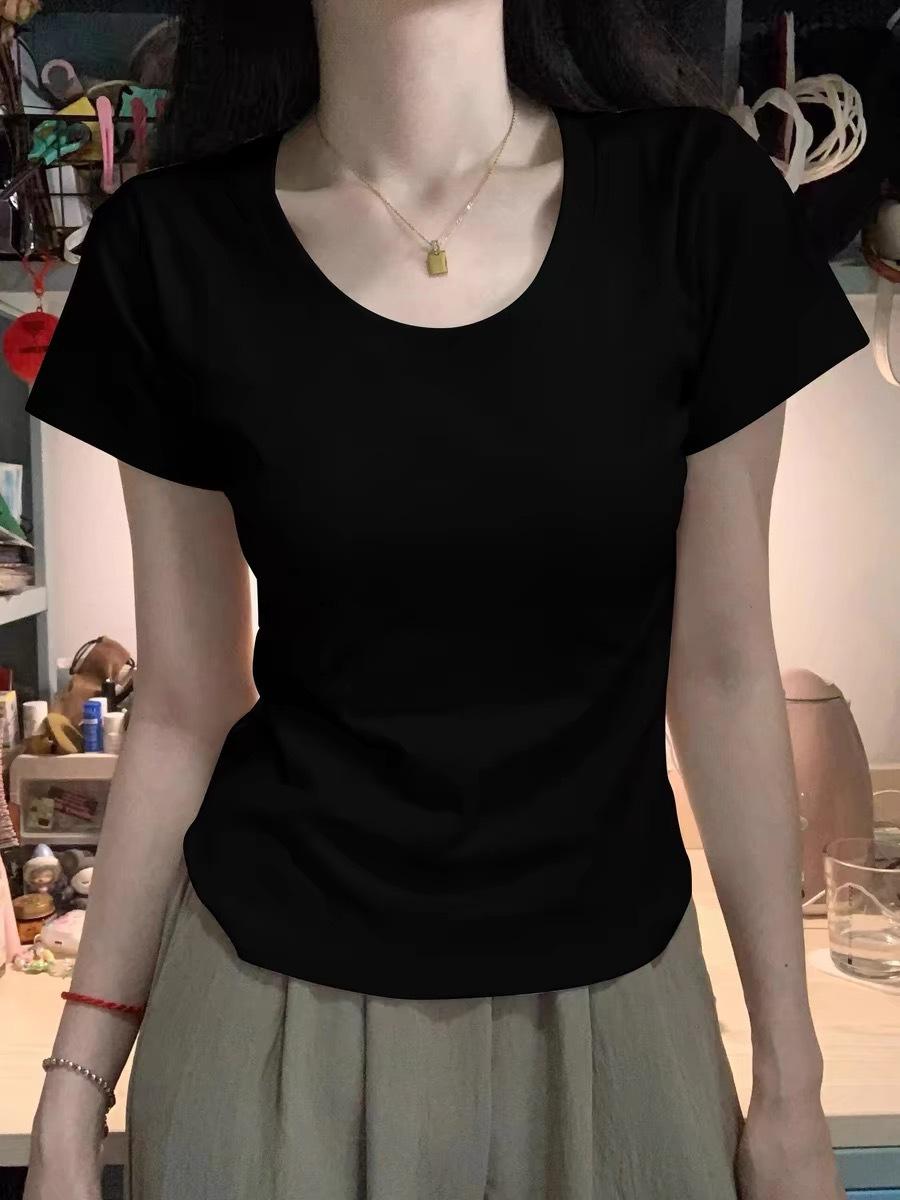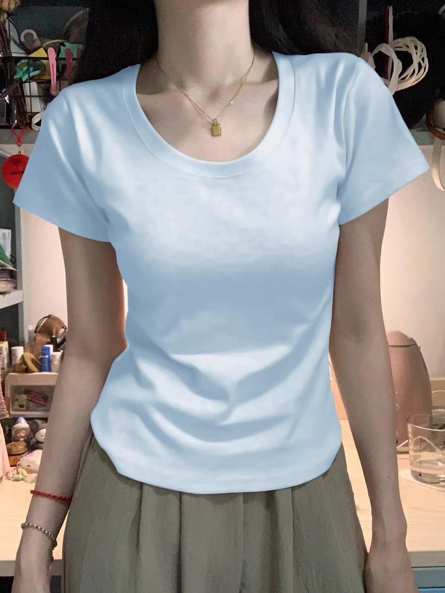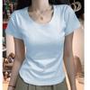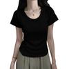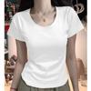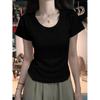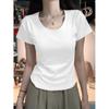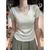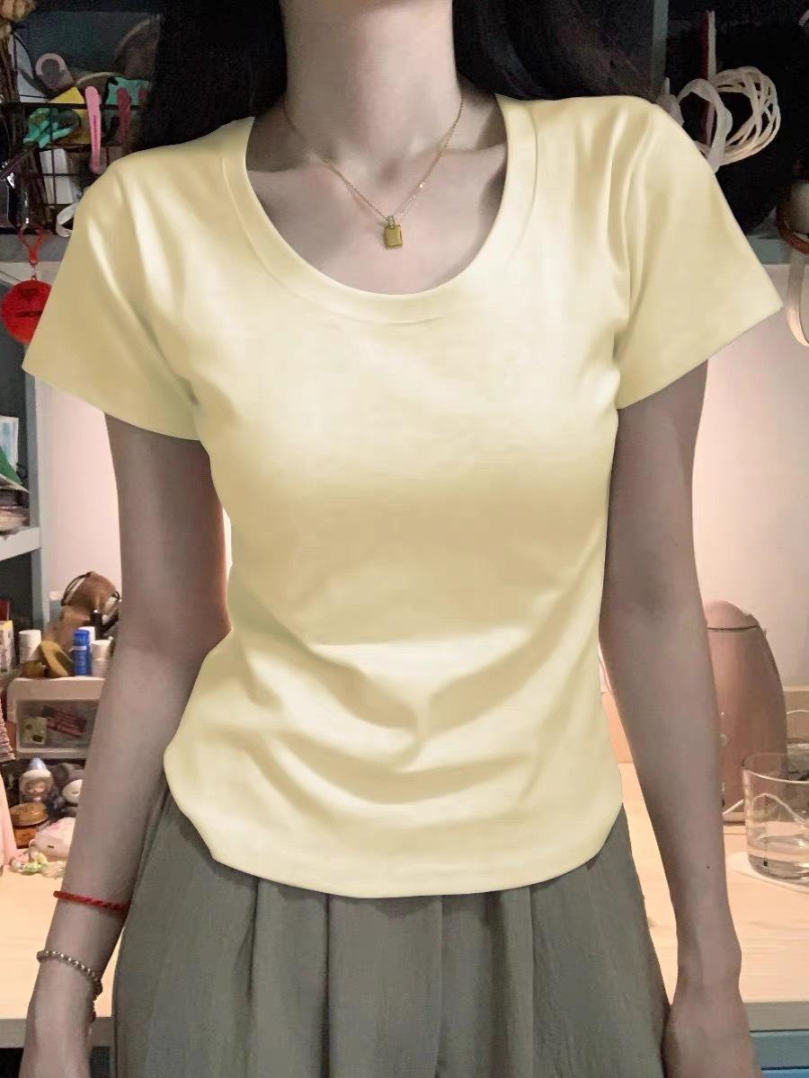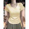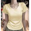 Diseño Amarillo Cremoso Hombro Derecho Algodón Puro Cuello U Manga Corta Camiseta para Mujer Verano 2025 Sexy Corta Ajustada Cintura Top