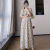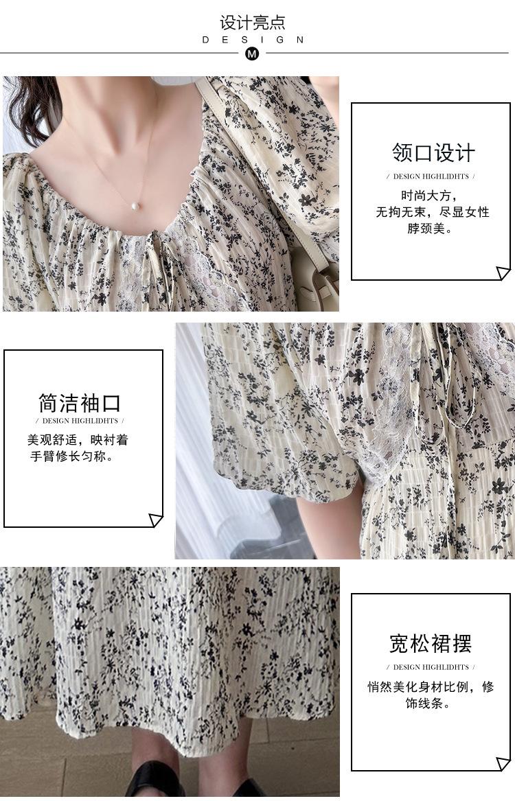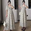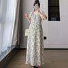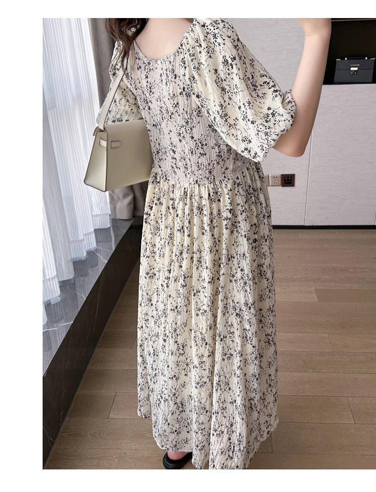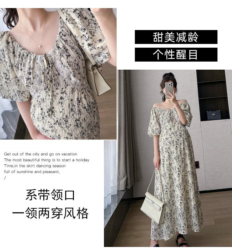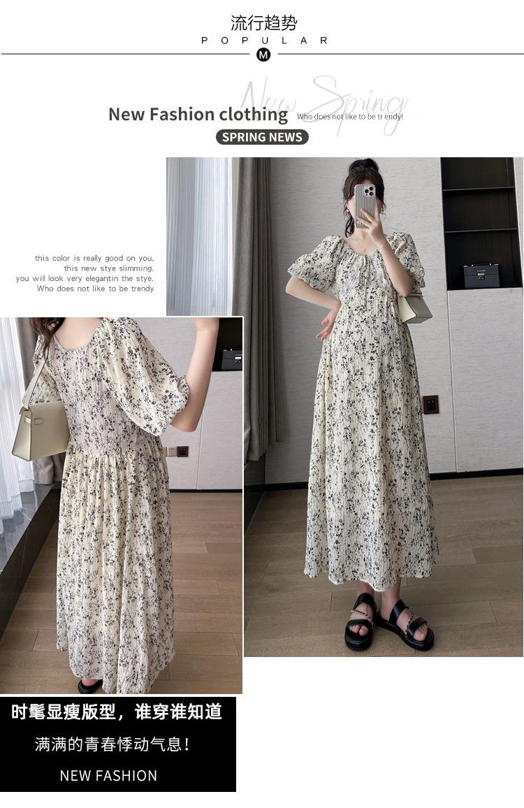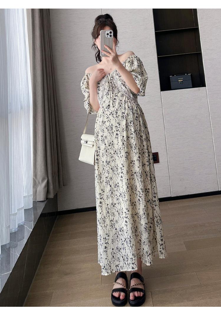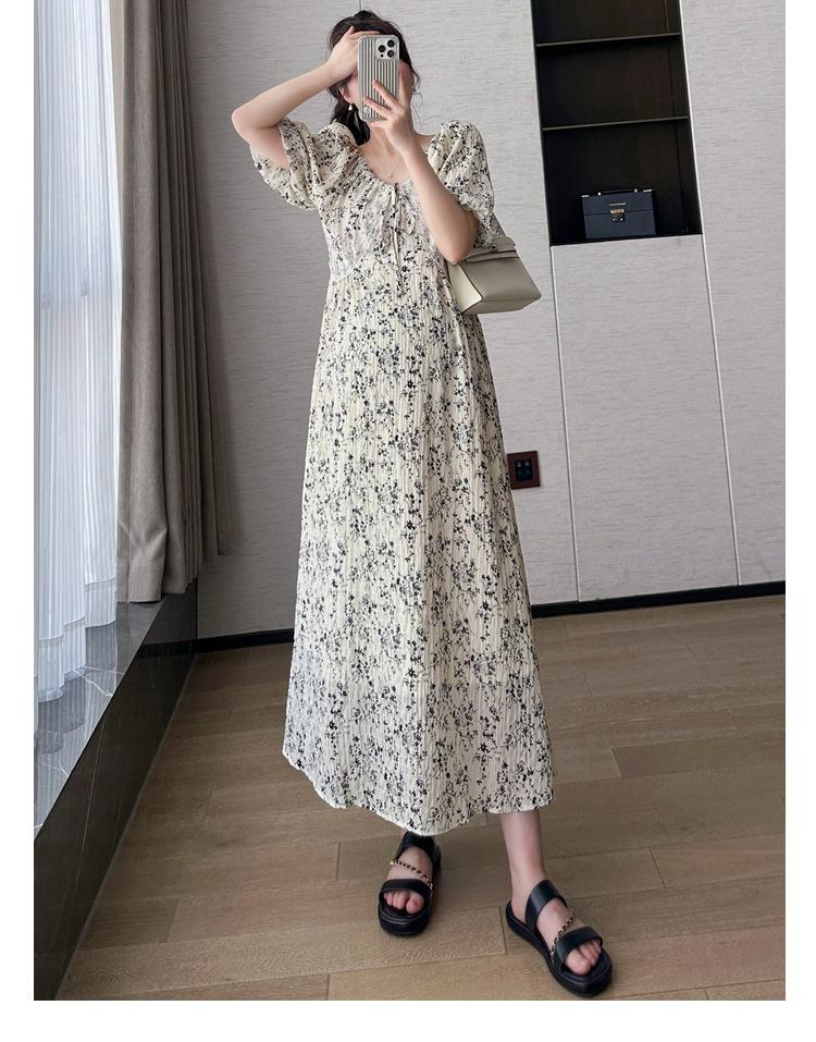 Maternidad Verano Nuevo Dulce Moda Estampado Manga Burbuja Largo Floral Suelto Vestido para Mujeres Embarazadas