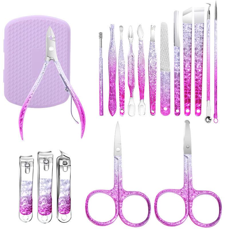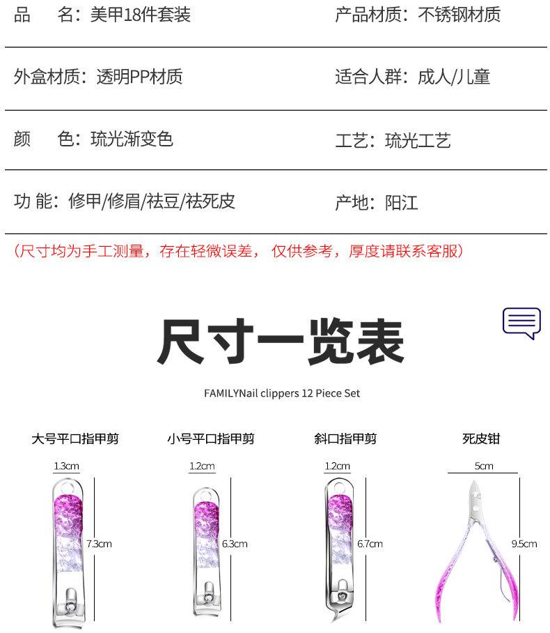 Nuevo set de cortaúñas de 18 piezas transfronterizo acero inoxidable tijeras para piel muerta set de herramientas para manicura venta al por mayor