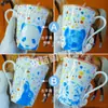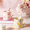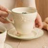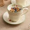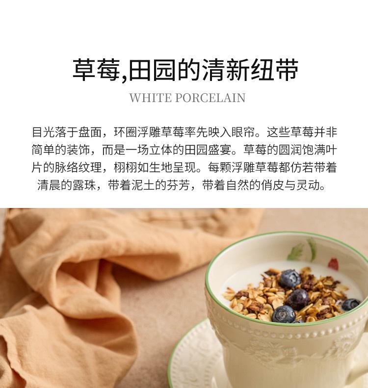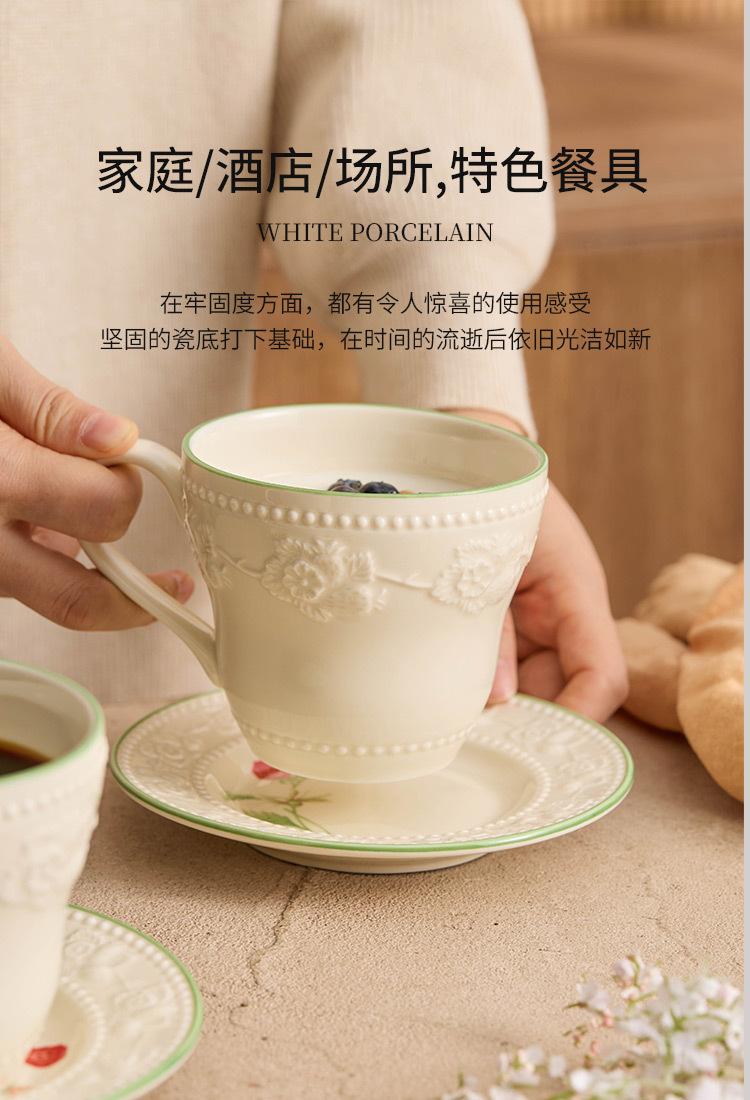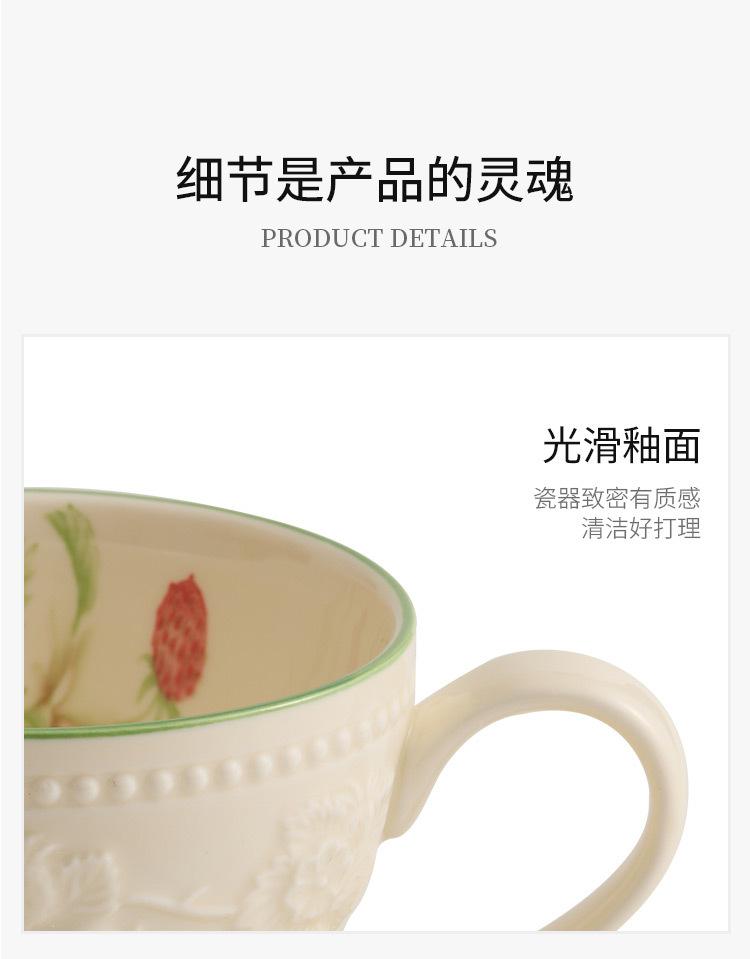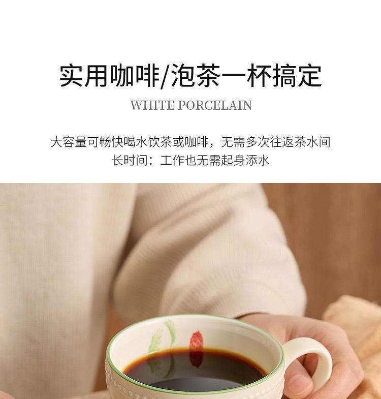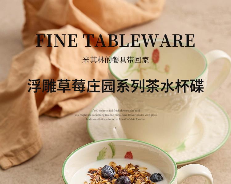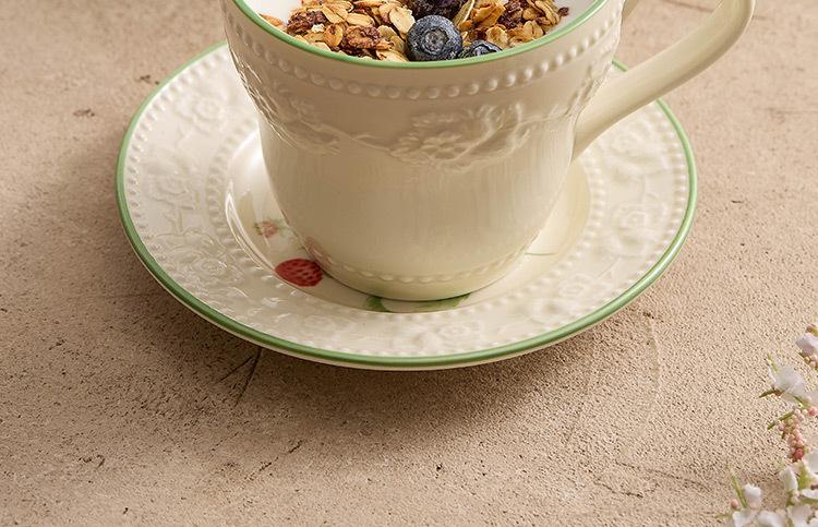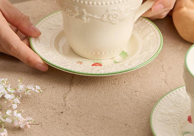 Taza de café de fresa en relieve de fábrica con plato taza taza de cerámica taza para beber alto valor de color taza de yogur con asa taza