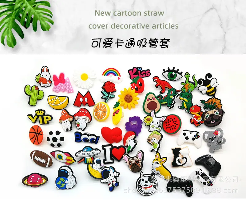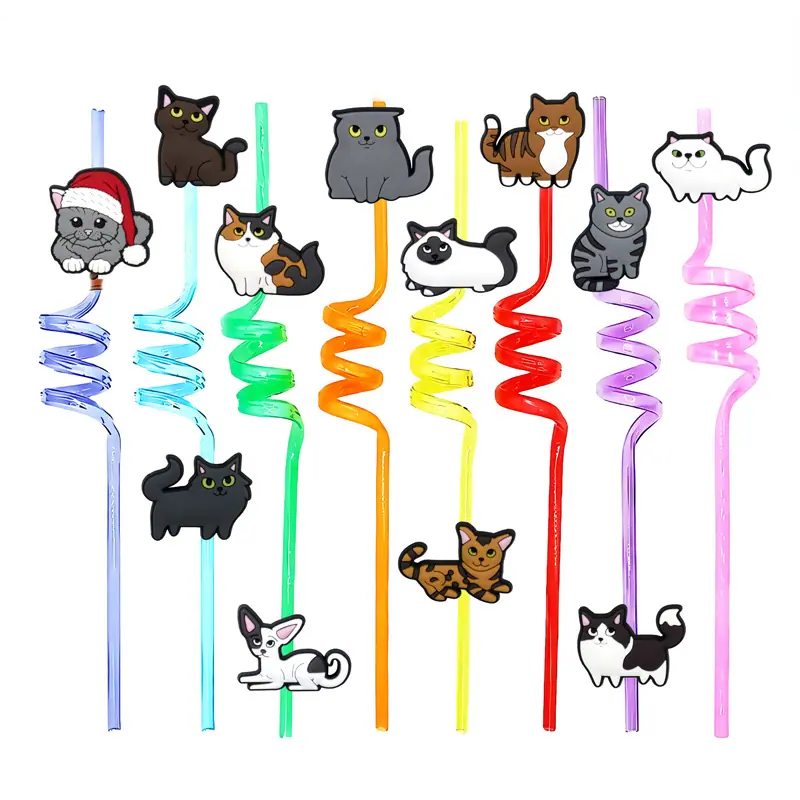 Funda de pajita de goma blanda de PVC de gato de dibujos animados de venta caliente transfronteriza en stock, lindo clip para pajita de taza de té con leche, accesorios para tapa de pajita