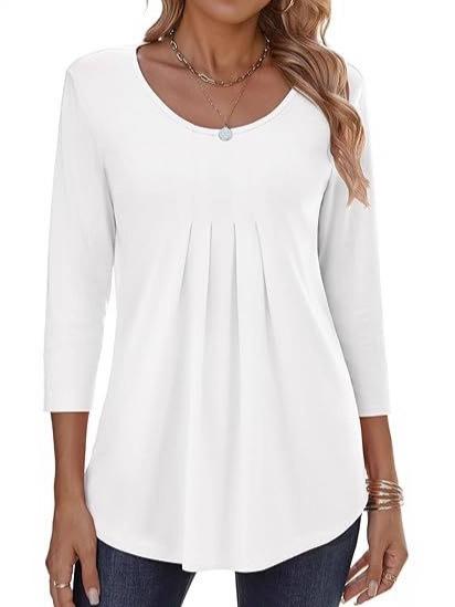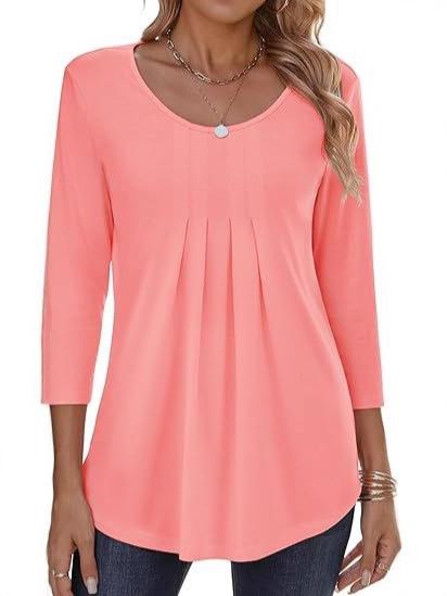 Amazon Europeo y Americano Transfronterizo Camiseta de Manga Larga Casual de Otoño para Mujer de Color Puro, Moda Casual, Holgada, Cuello Redondo