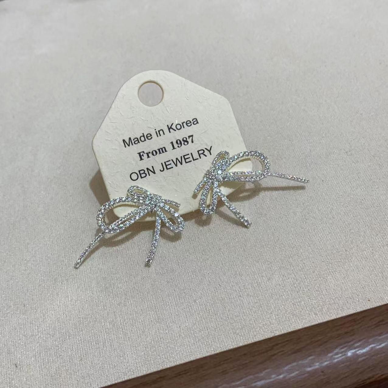 Pendientes de lazo exquisitos de estilo minimalista, pendientes avanzados y versátiles para el temperamento de mujer, moda coreana de celebridad de internet, aretes simples