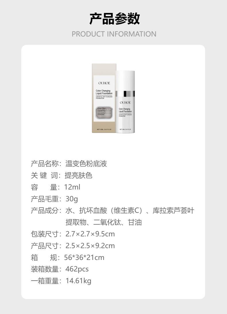 Ouhoe Base Líquida Cambiante de Temperatura Ilumina Conveniente Natural Corrector Maquillaje Base Ligero Tono de Piel Uniforme e Hidratante Base Líquida