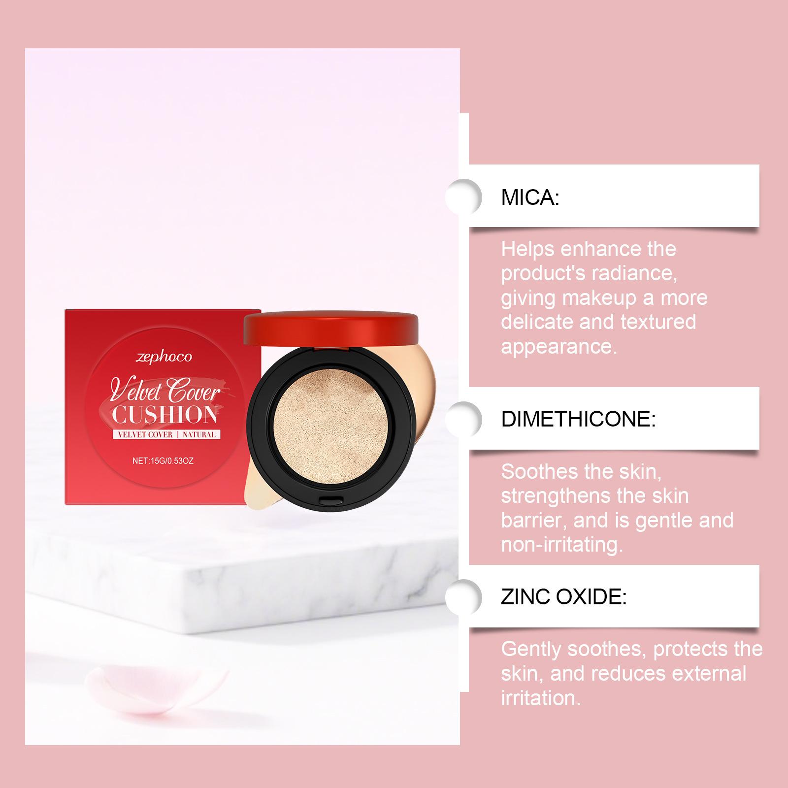 Cojín Hidratante y Corrector Zephoco Textura Terciopelo Crea Maquillaje Base Suave e Impecable Cojín Hidratante y Adherente