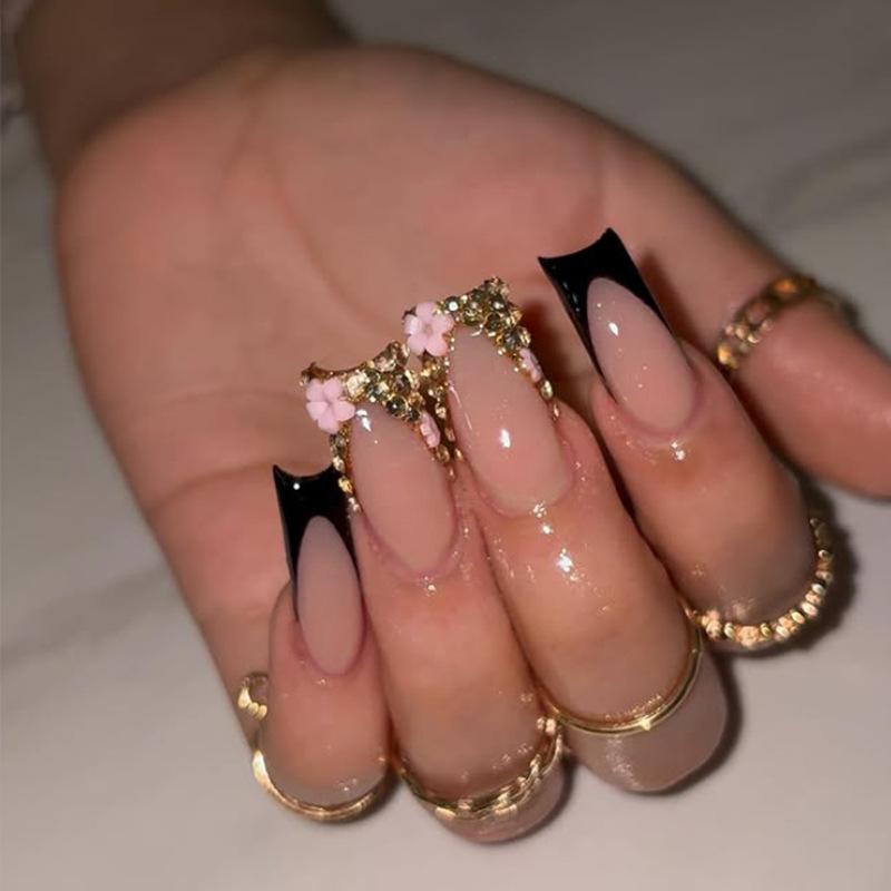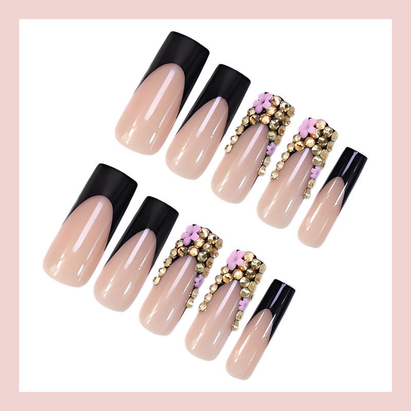 Uñas Postizas Tipo Pipa de Agua de Venta Caliente Transfronteriza Acabado Lazo Parche Color Puro Manicura Uñas Usables Uñas al por Mayor