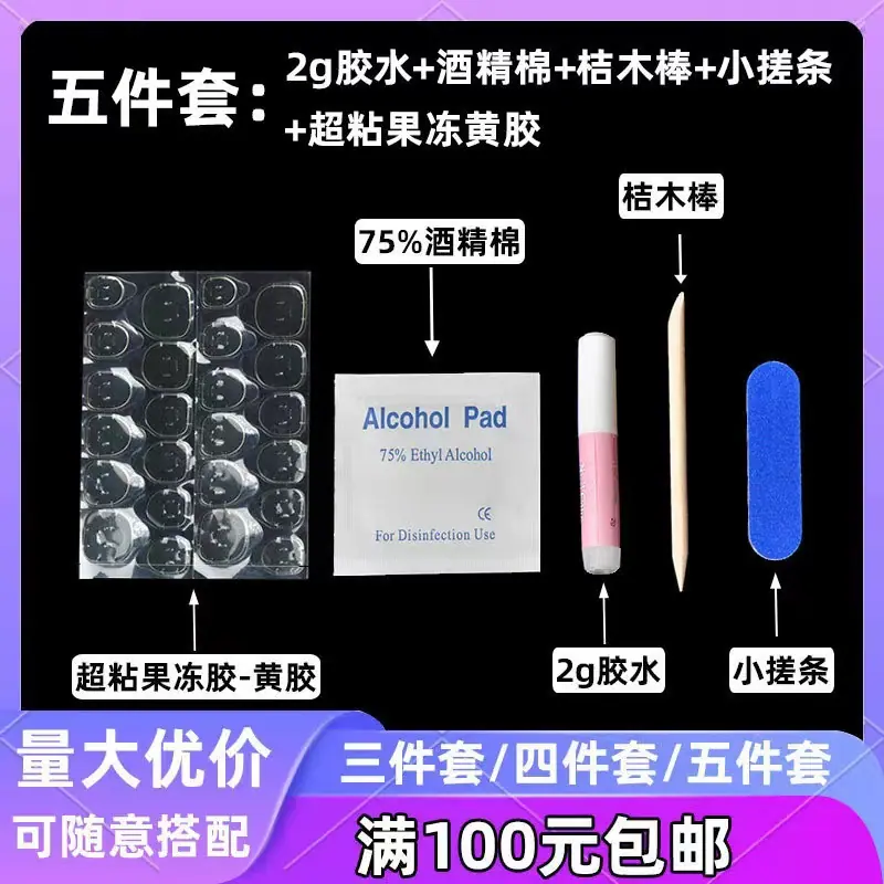 Nail sticker, Nail glue, Jelly gel, Nail surface grinding tool, Nail trimming tool set