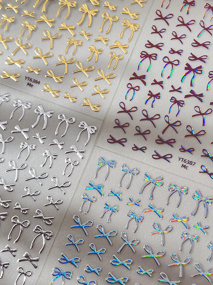 Nuevos Stickers Finos y Resistentes para Uñas con Lazo Relieve Tridimensional Lazo de Colores Serpentinas Adhesivos Decoraciones para Uñas Venta al por Mayor