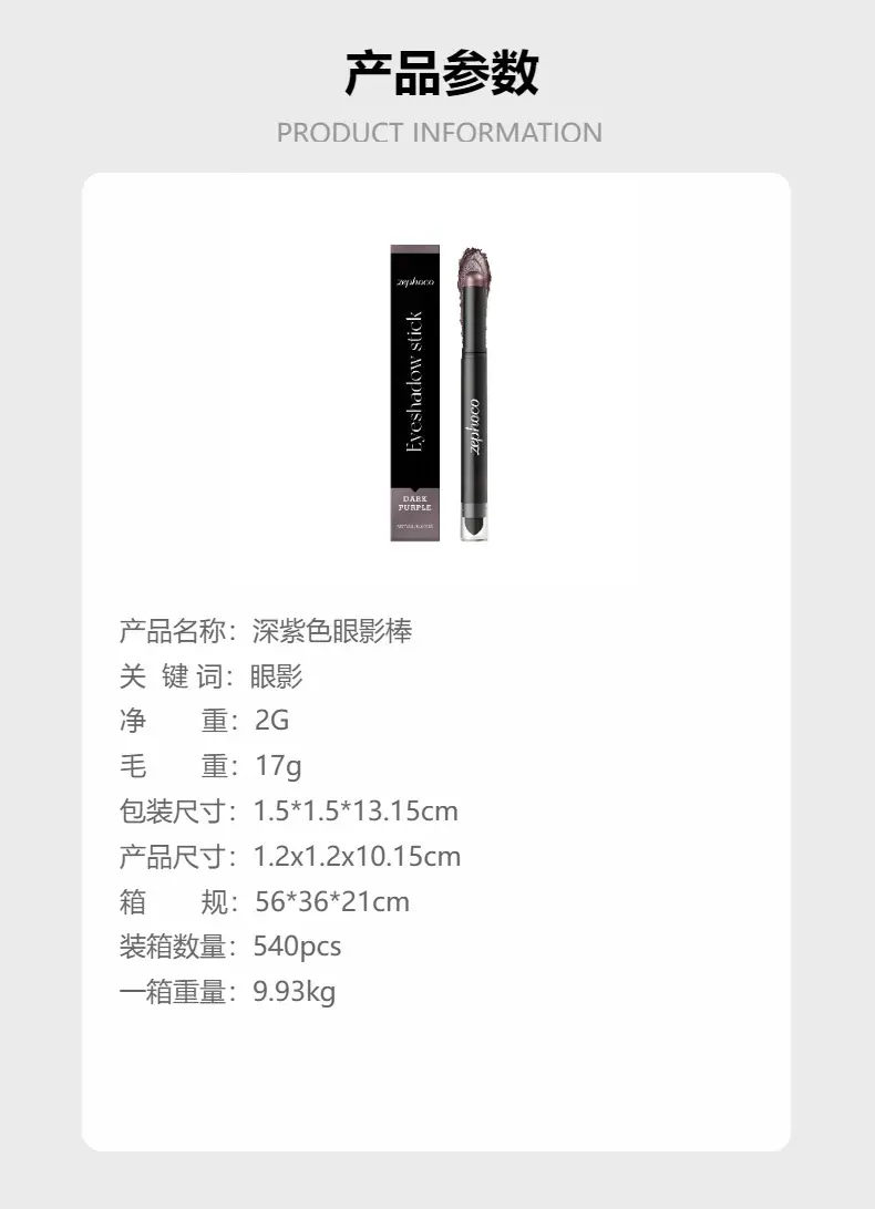 Barra de Sombra de Ojos Zephoco Morado Profundo Color Natural Larga Duración Hidratante Diario Portátil