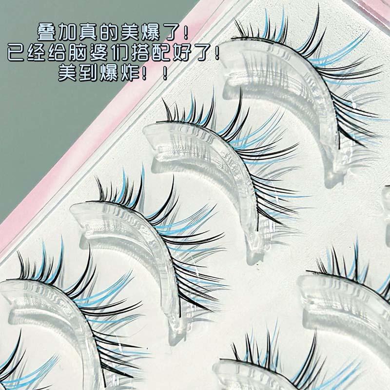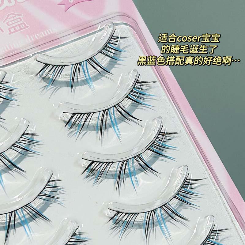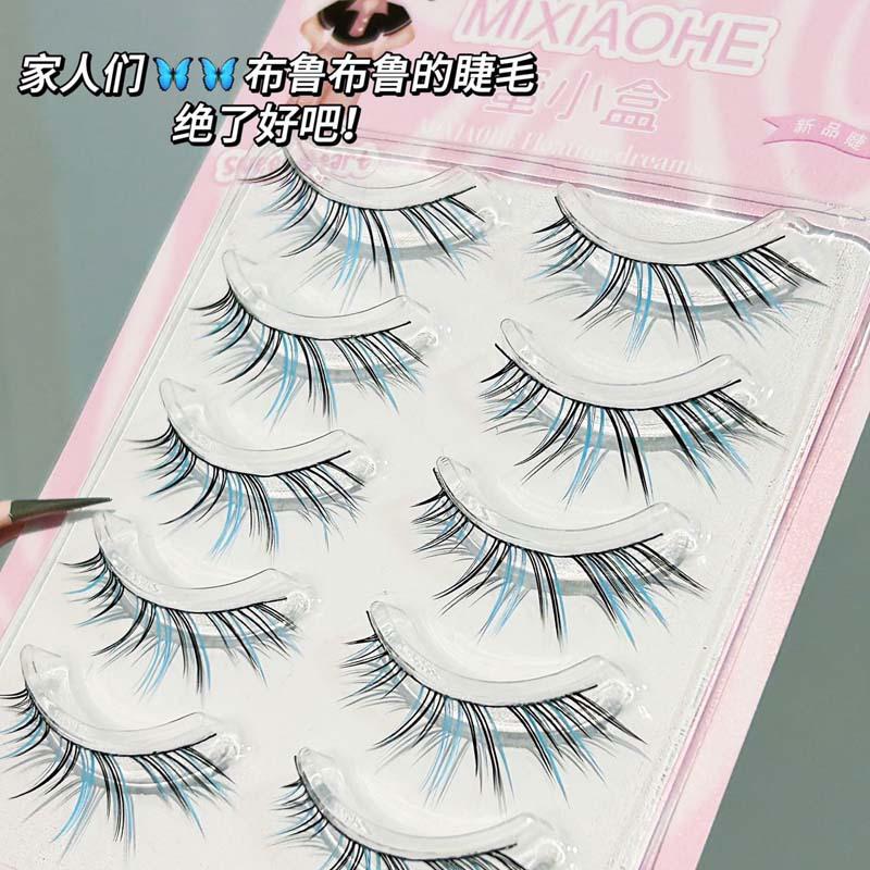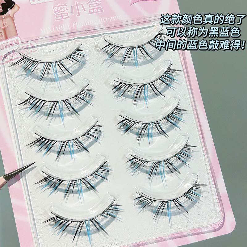 Mxh410-01 colorful blue lower eyelashes [glue-free six rows]