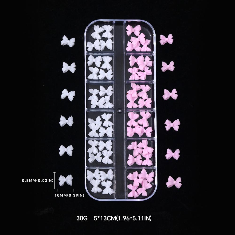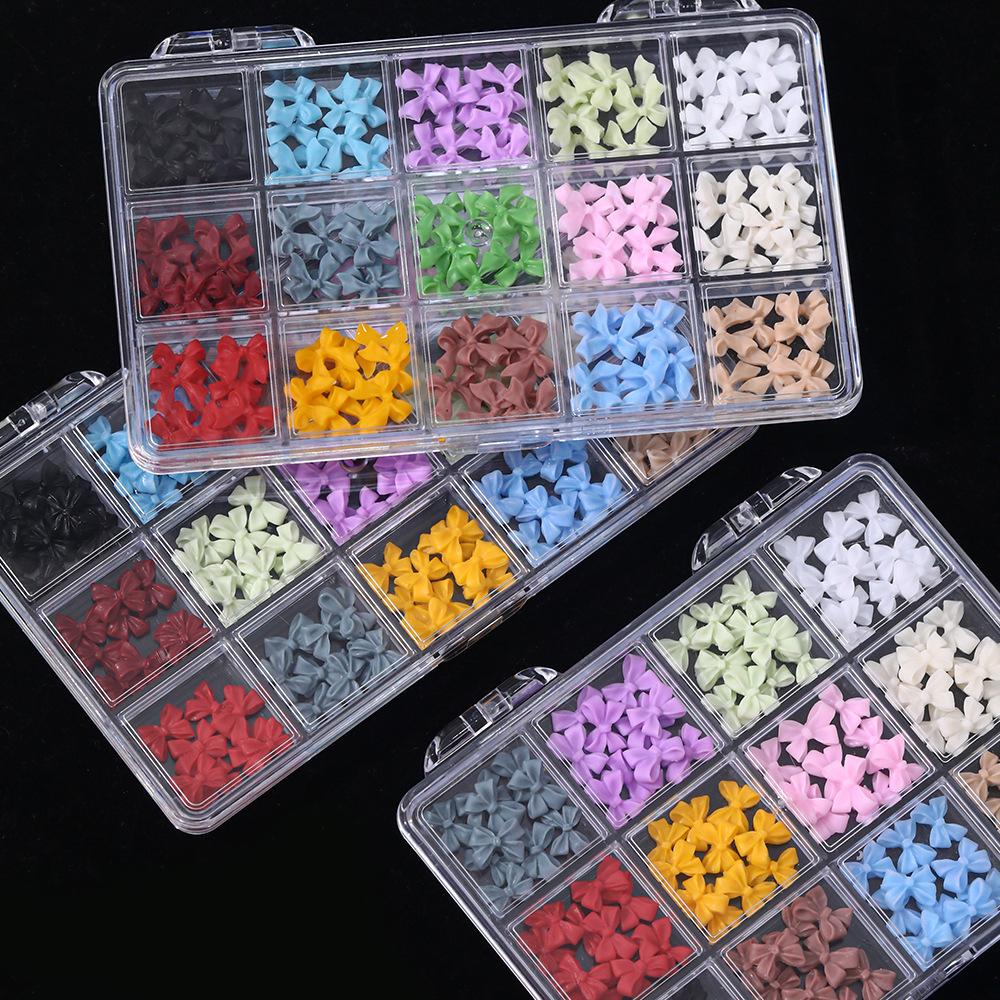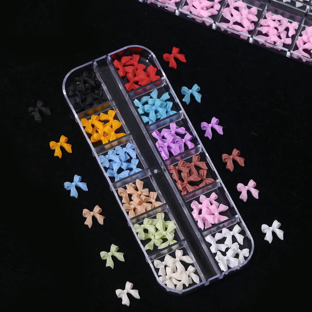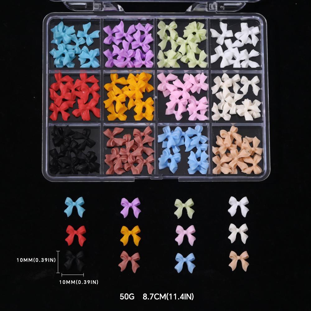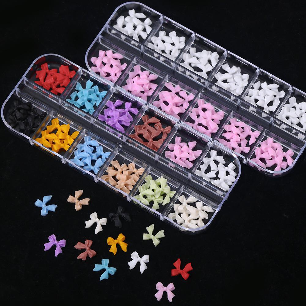 12 Compartimentos Dijes para Arte de Uñas de Lazo Mixto Transfronterizo Negro Blanco Colorido 3D Lazo de Cinta Decoraciones para Uñas