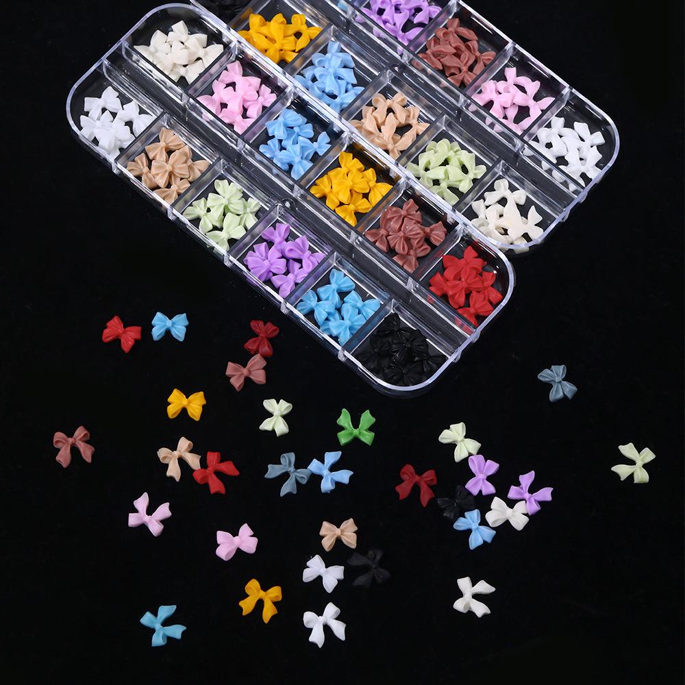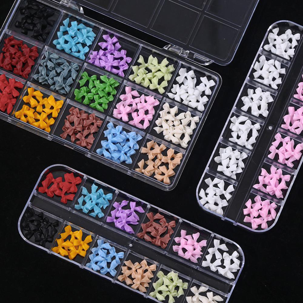 Compra 12 Compartimentos Dijes para Arte de Uñas de Lazo Mixto Transfronterizo Negro Blanco Colorido 3D Lazo de Cinta Decoraciones para Uñas al por mayor en Joom.pro