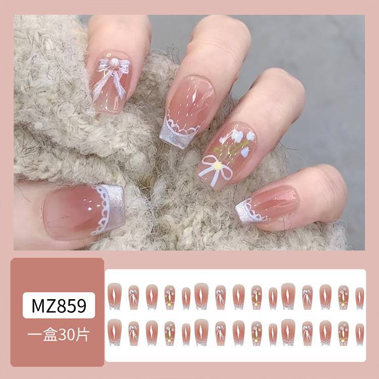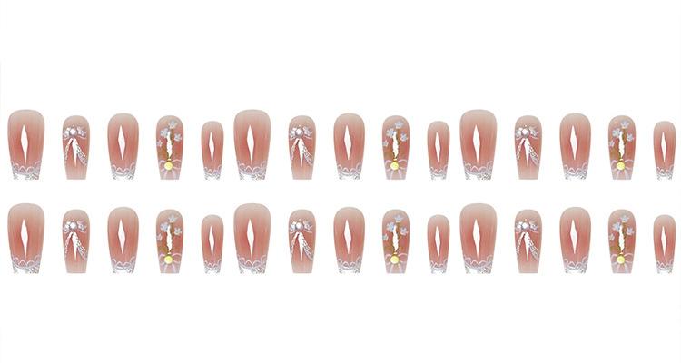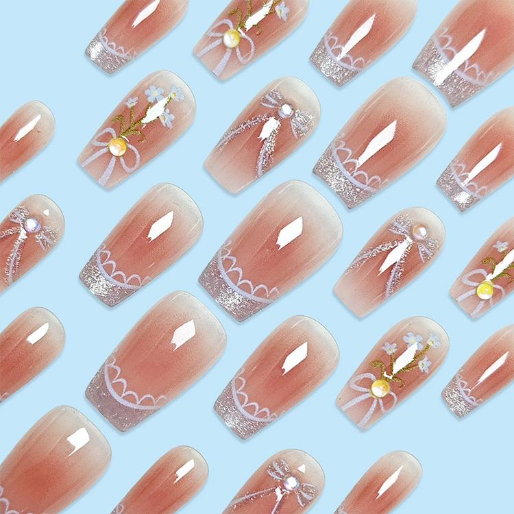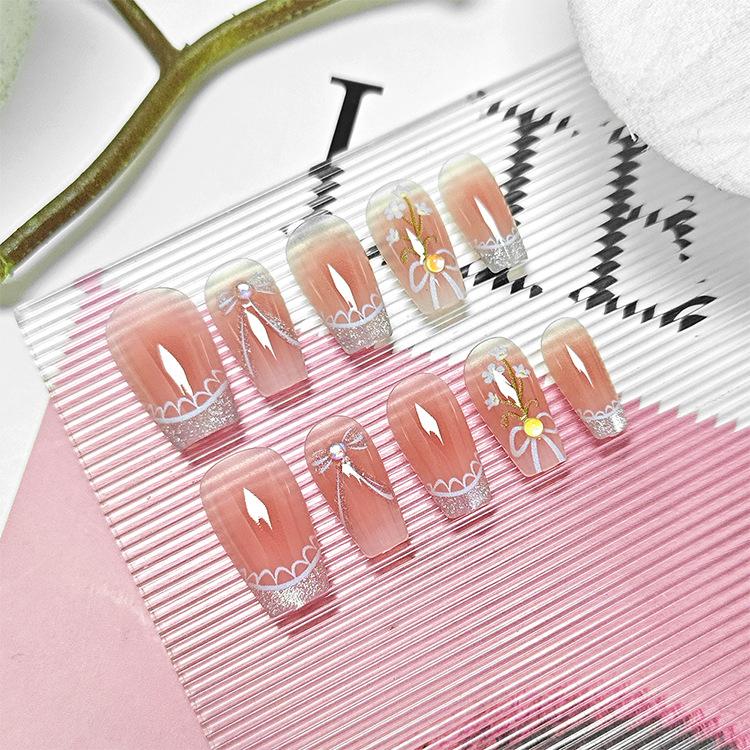 Uñas Postizas Florales de Moda y Exquisitas, Manicura Francesa Ojo de Gato Perla, 30 Piezas de Parches de Uñas Acabadas