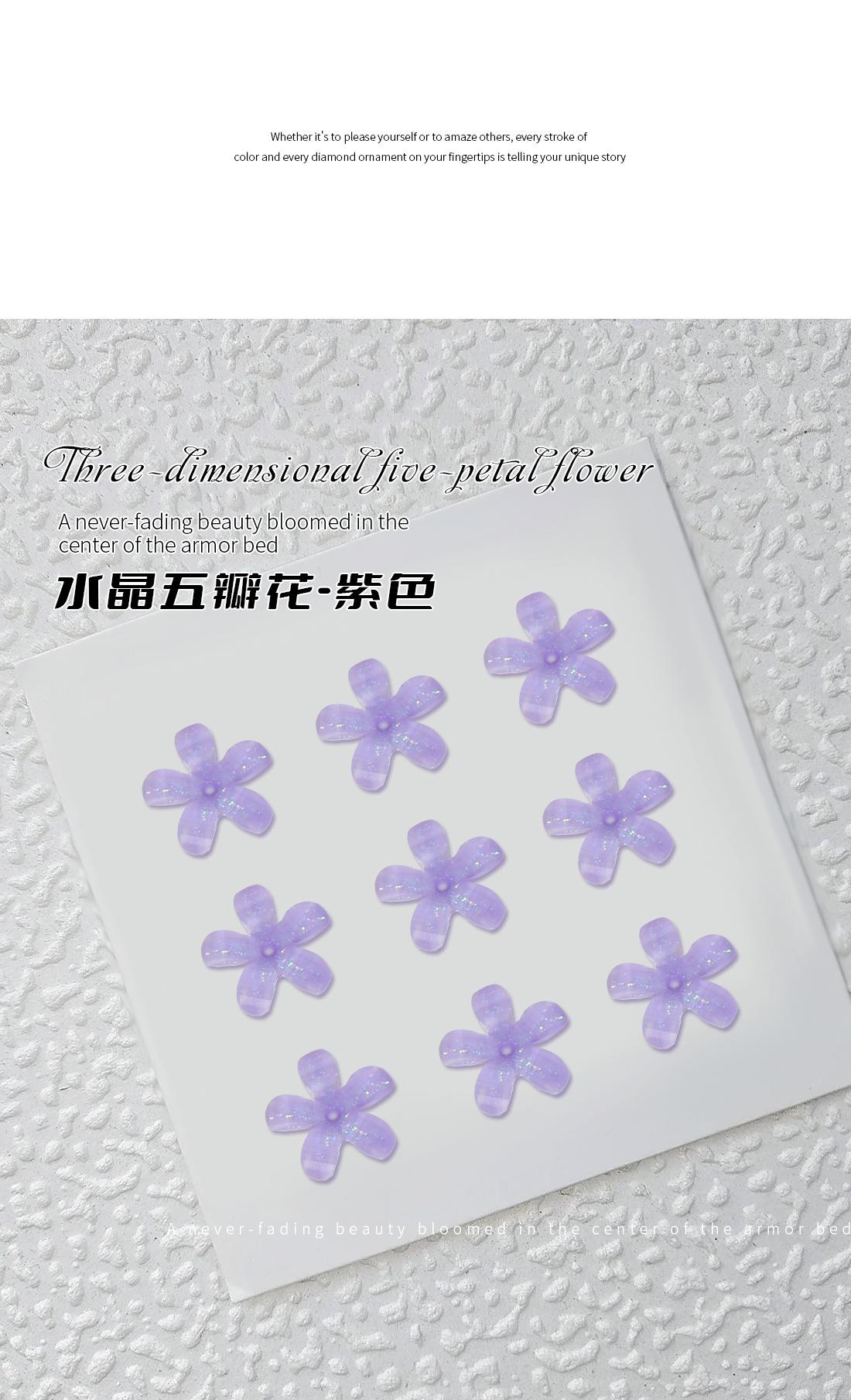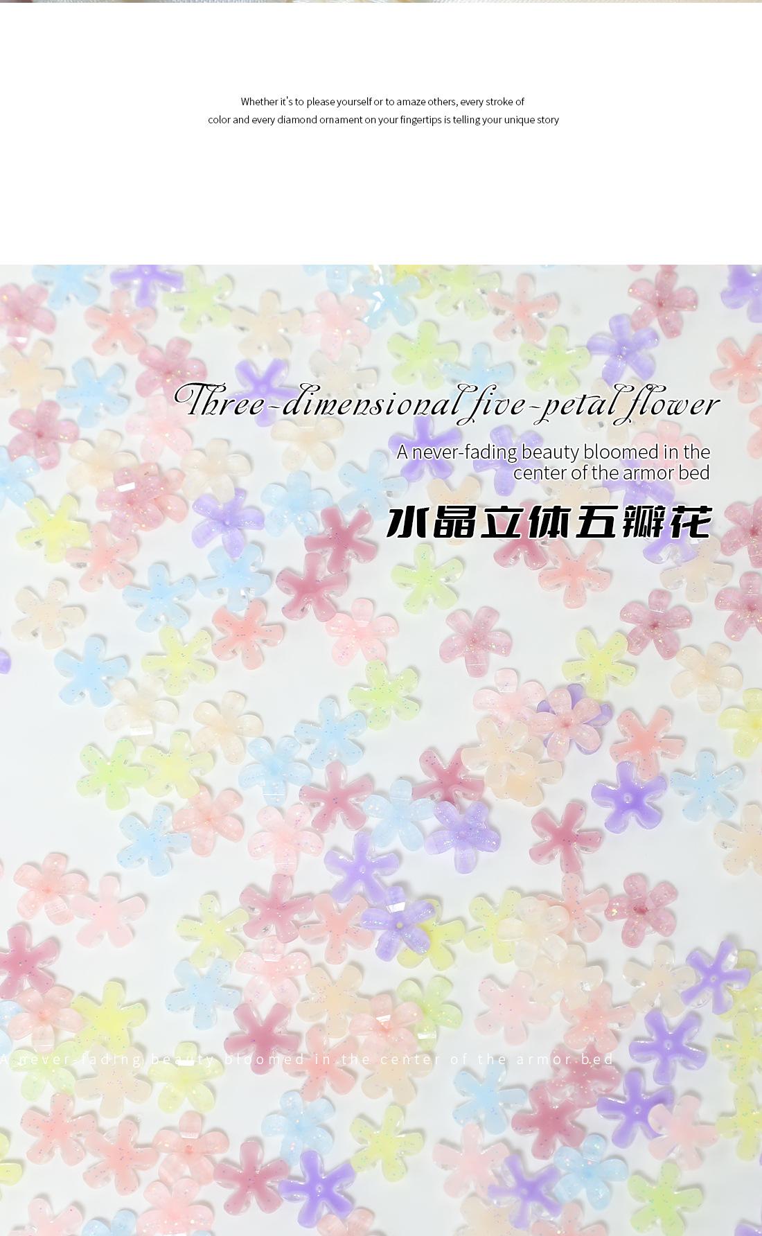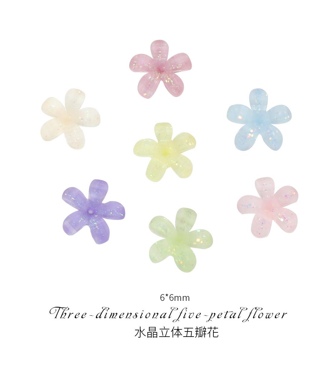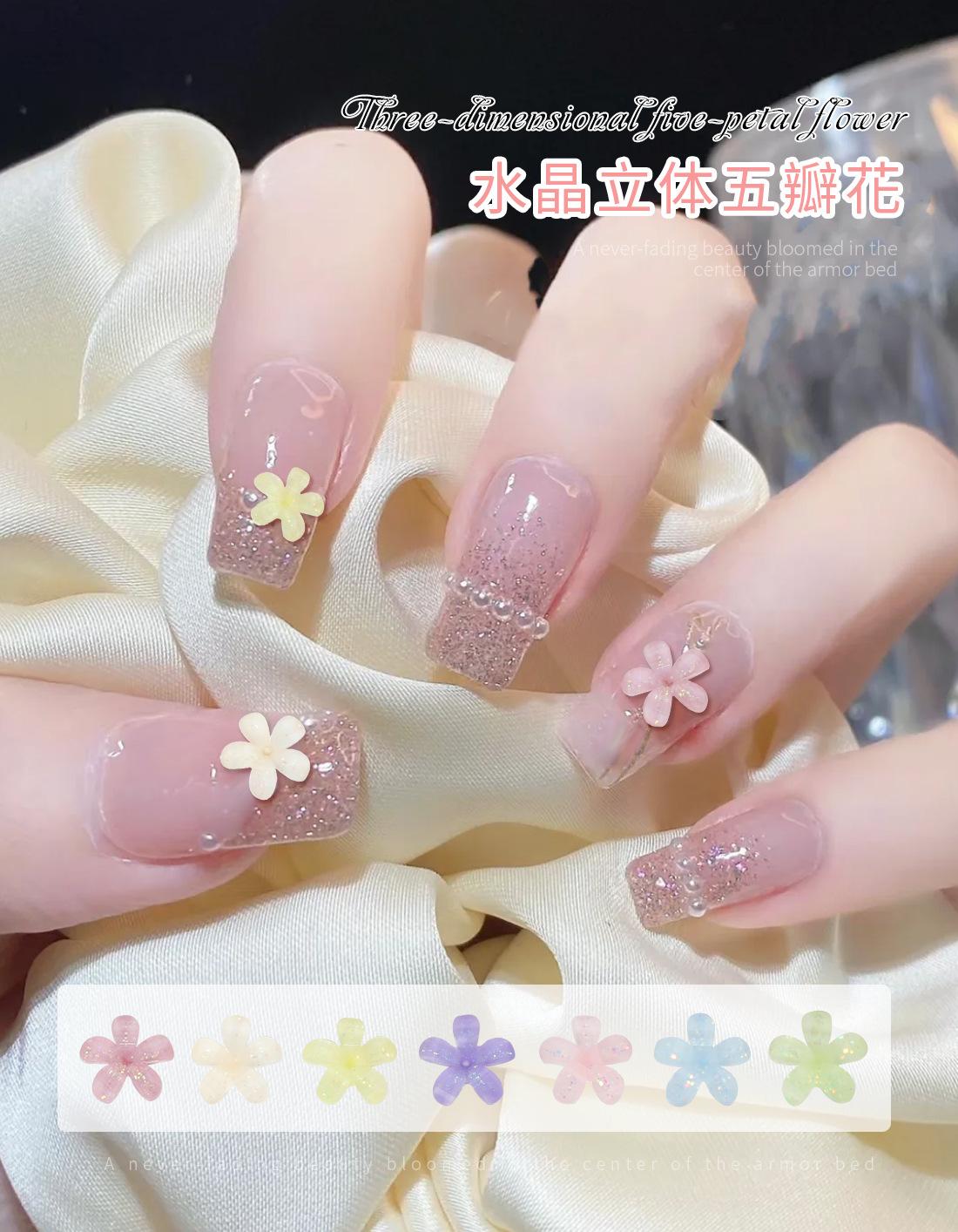 Nuevos Accesorios para Uñas de Arte Floral de Cinco Pétalos Transparentes como Hielo, Decoraciones para Uñas de Flores de Resina 3D de Colores Mezclados de Moda
