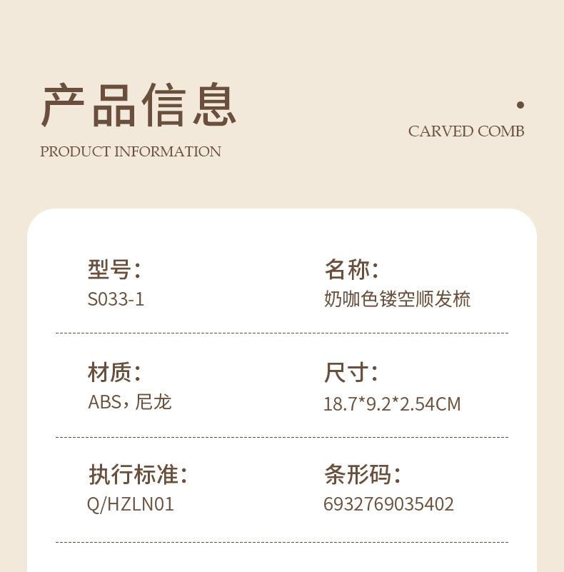 Peine de Costillas Color Café con Leche Lina para Mujer, Peine Especial para Ahuecar la Raíz del Cabello, Peine Masajeador para Cabello Rizado