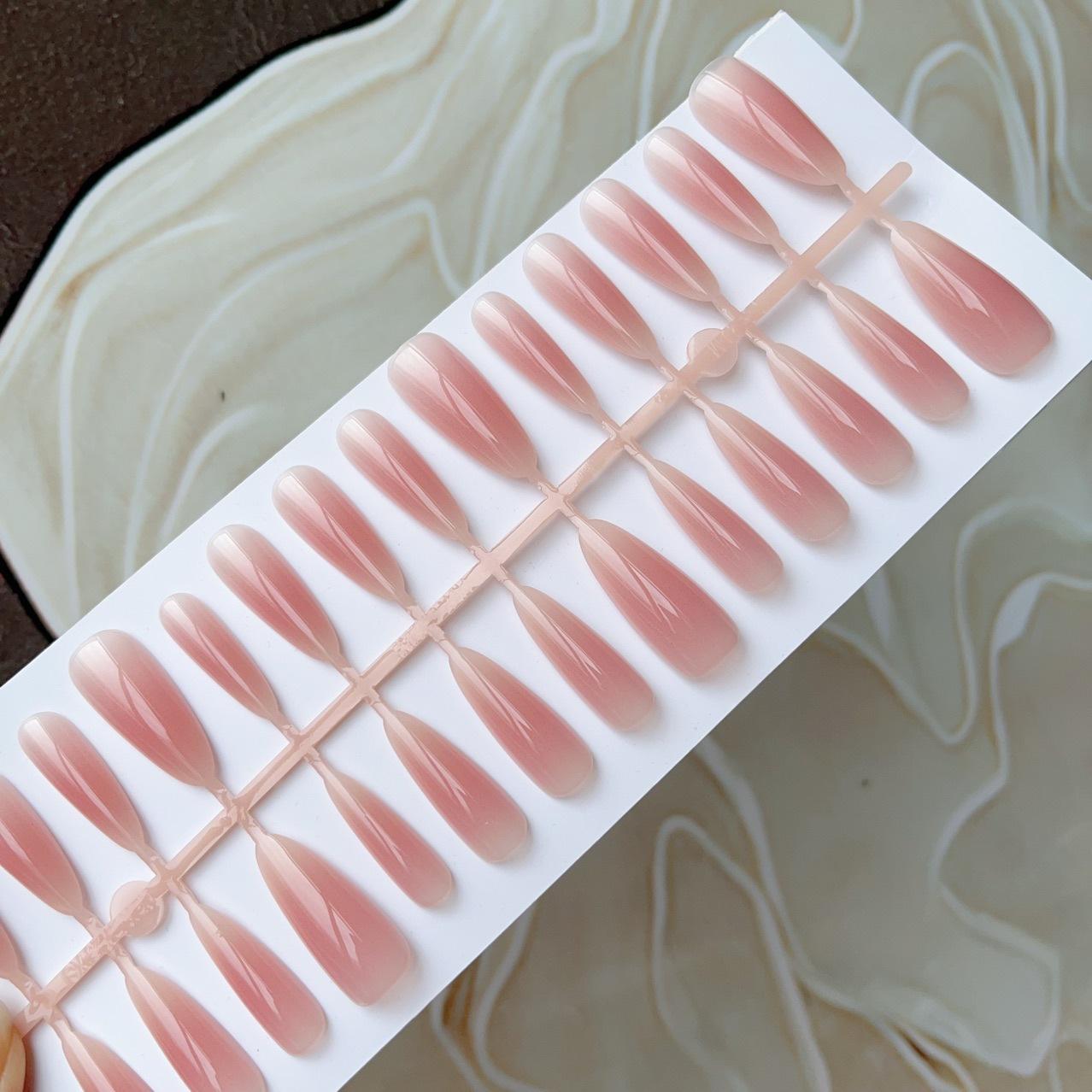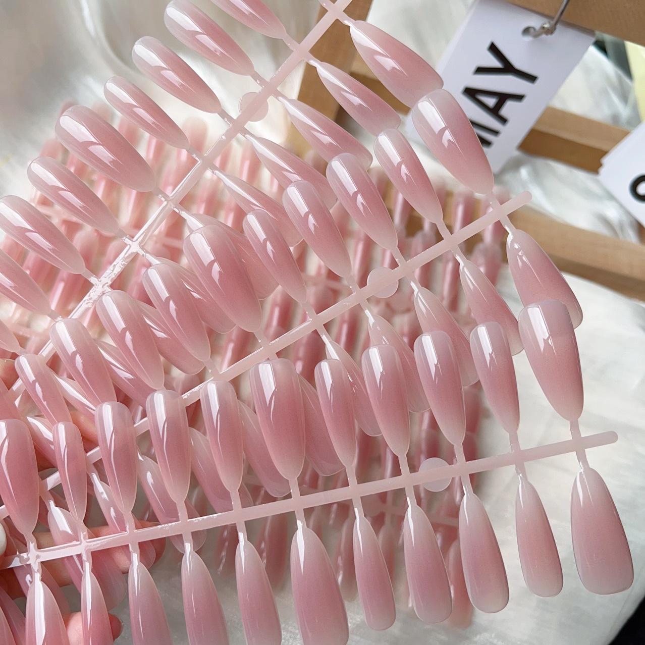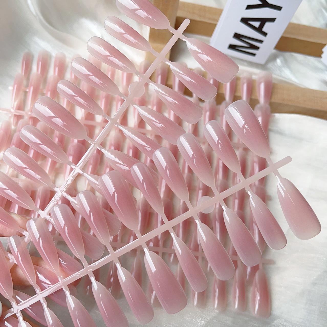 30 piezas de arte de uñas postizas largas almendradas color blanco rubor jade puro temperamento desmontable parche de arte de uñas acabado