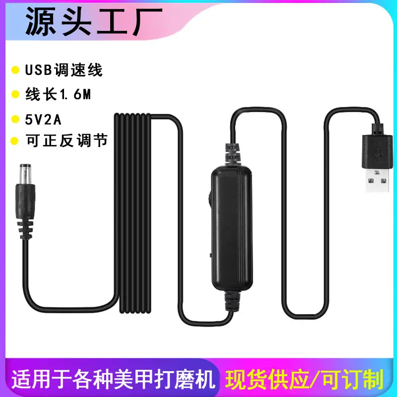 Pluma Eléctrica de Pulido USB con Cable de Velocidad Ajustable 5V2A Máquina para Arte de Uñas Pluma para Remover Uñas 1.6m con Herramienta Eléctrica para Arte de Uñas con Avance y Retroceso
