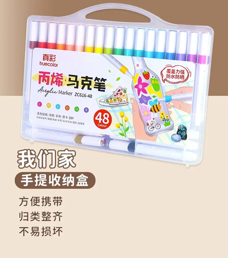 Plumón Acrílico Truecolor 60 Colores Pintura para Niños Arte Pluma Especial para Estudiantes de Primaria Recargable Color Pluma para Graffiti