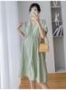 Vestido de Maternidad 2024 Nueva Ropa de Maternidad Moda de Verano Casual Cuello en V Suelto y Más Fácil de Combinar Vestido Slim Plisado Trendy