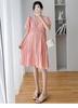 Compra Vestido de Maternidad 2024 Nueva Ropa de Maternidad Moda de Verano Casual Cuello en V Suelto y Más Fácil de Combinar Vestido Slim Plisado Trendy al por mayor en Joom.pro