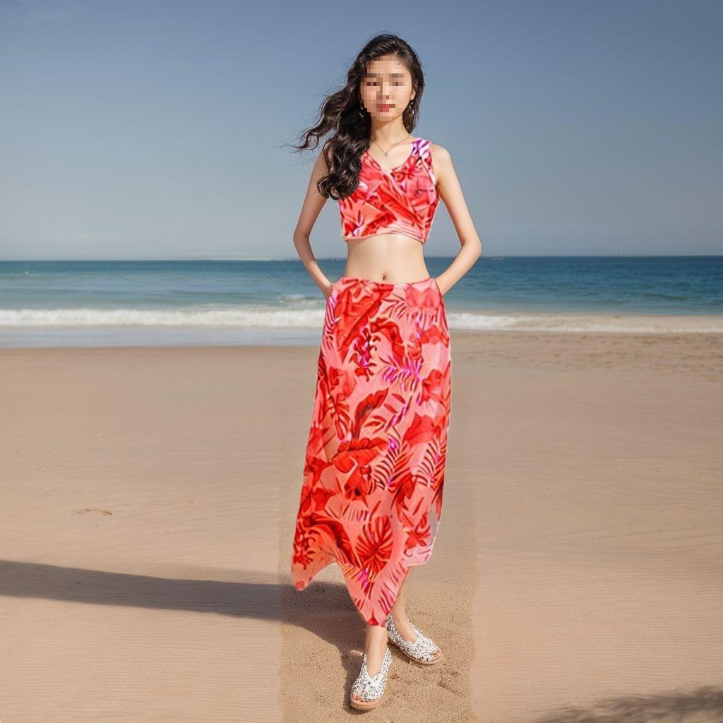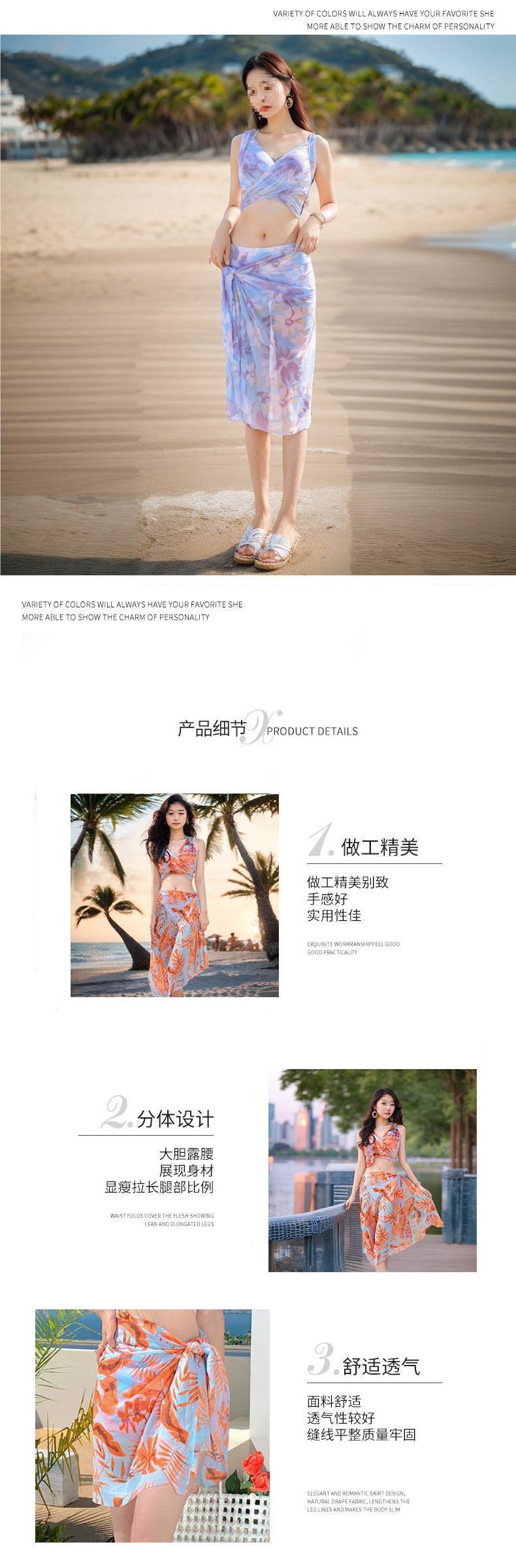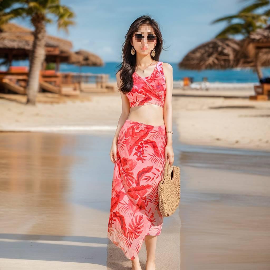 Traje de Baño Bikini Conservador para Mujer de Tres Piezas para Vacaciones, Cubrepiés Dividido, Sexy, Adelgazante, Boxer, Playa