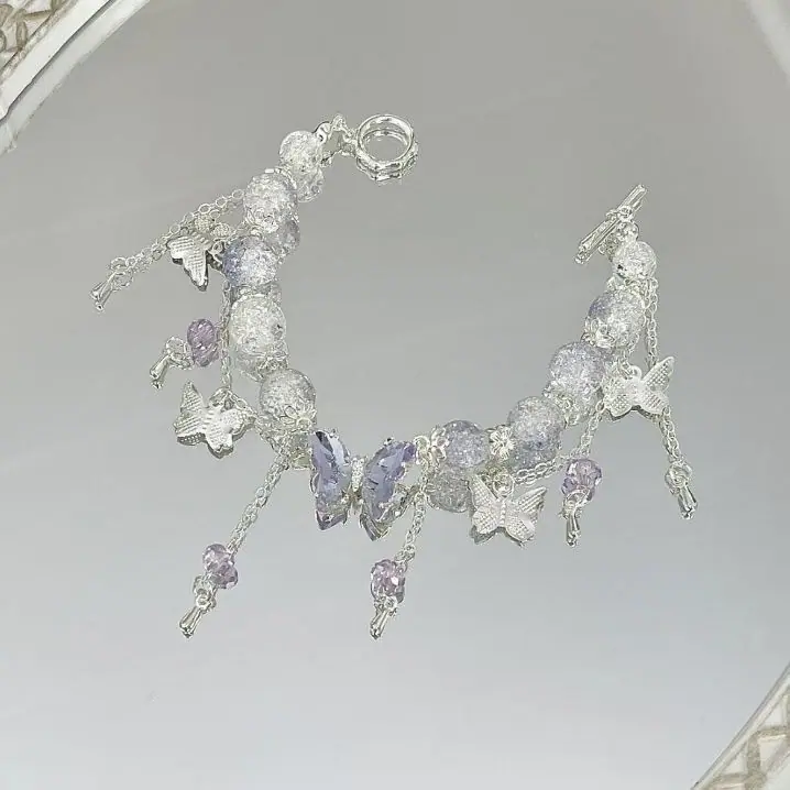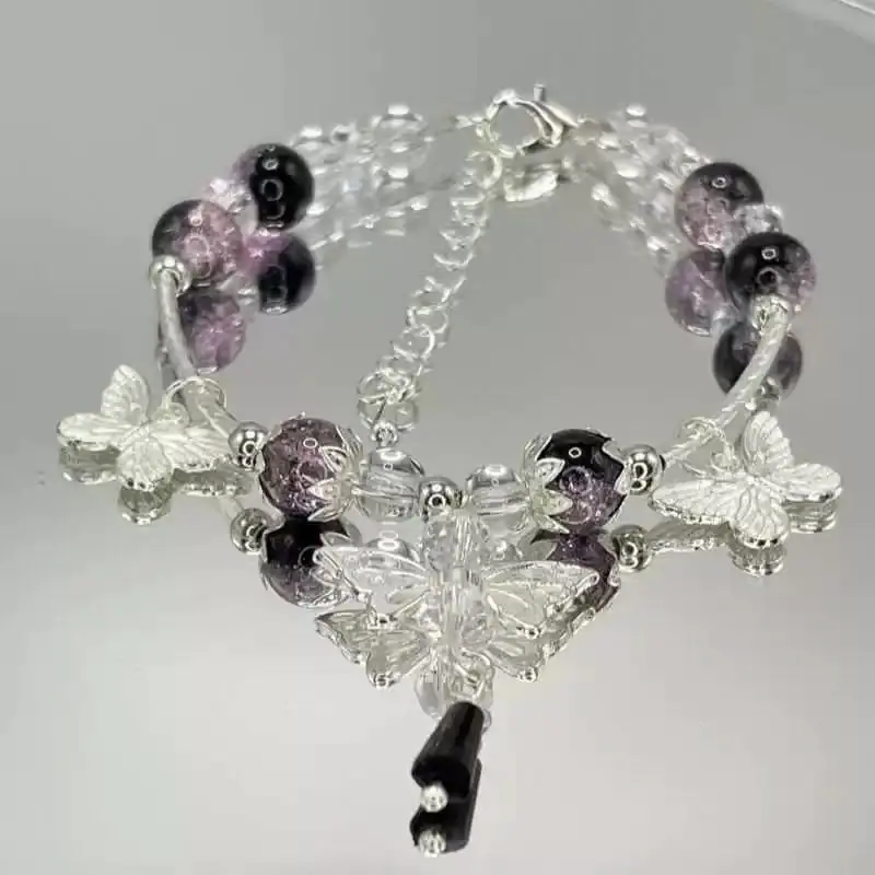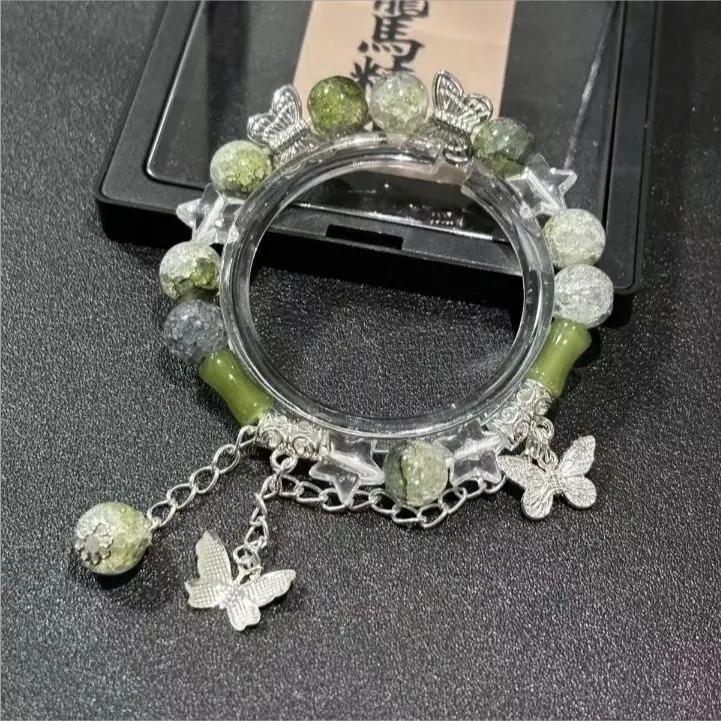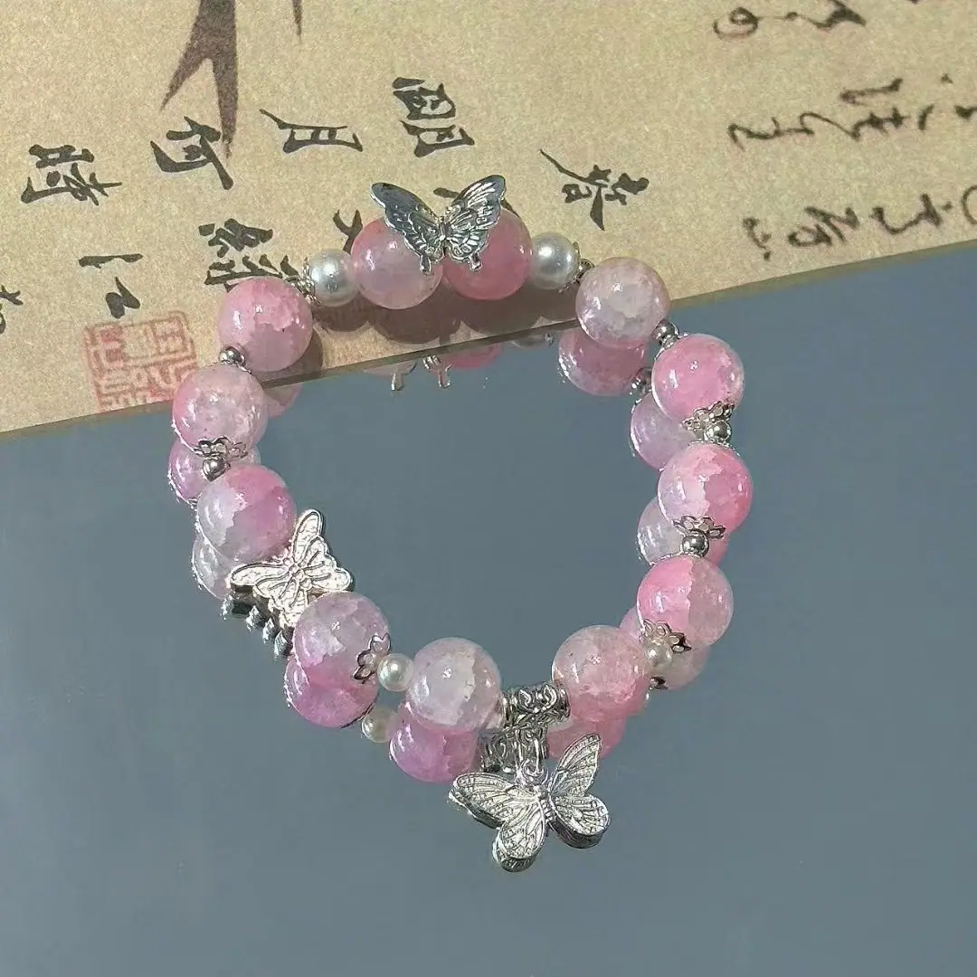 Nueva Pulsera Super Hada Espíritu Mariposa Perla Hielo Transparente Diseño Ins Mariposa Bicolor Pulsera Combinable para Estudiantes