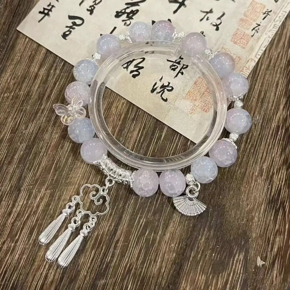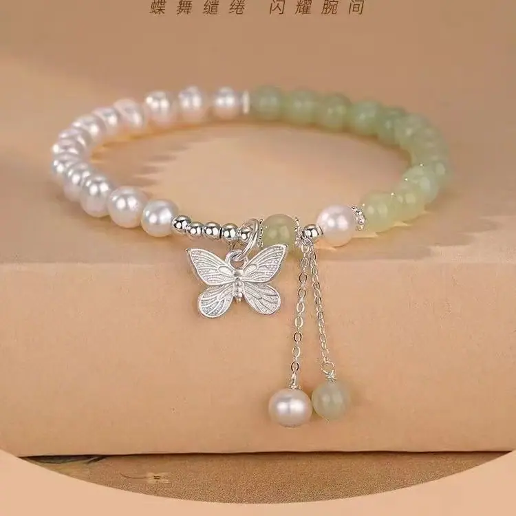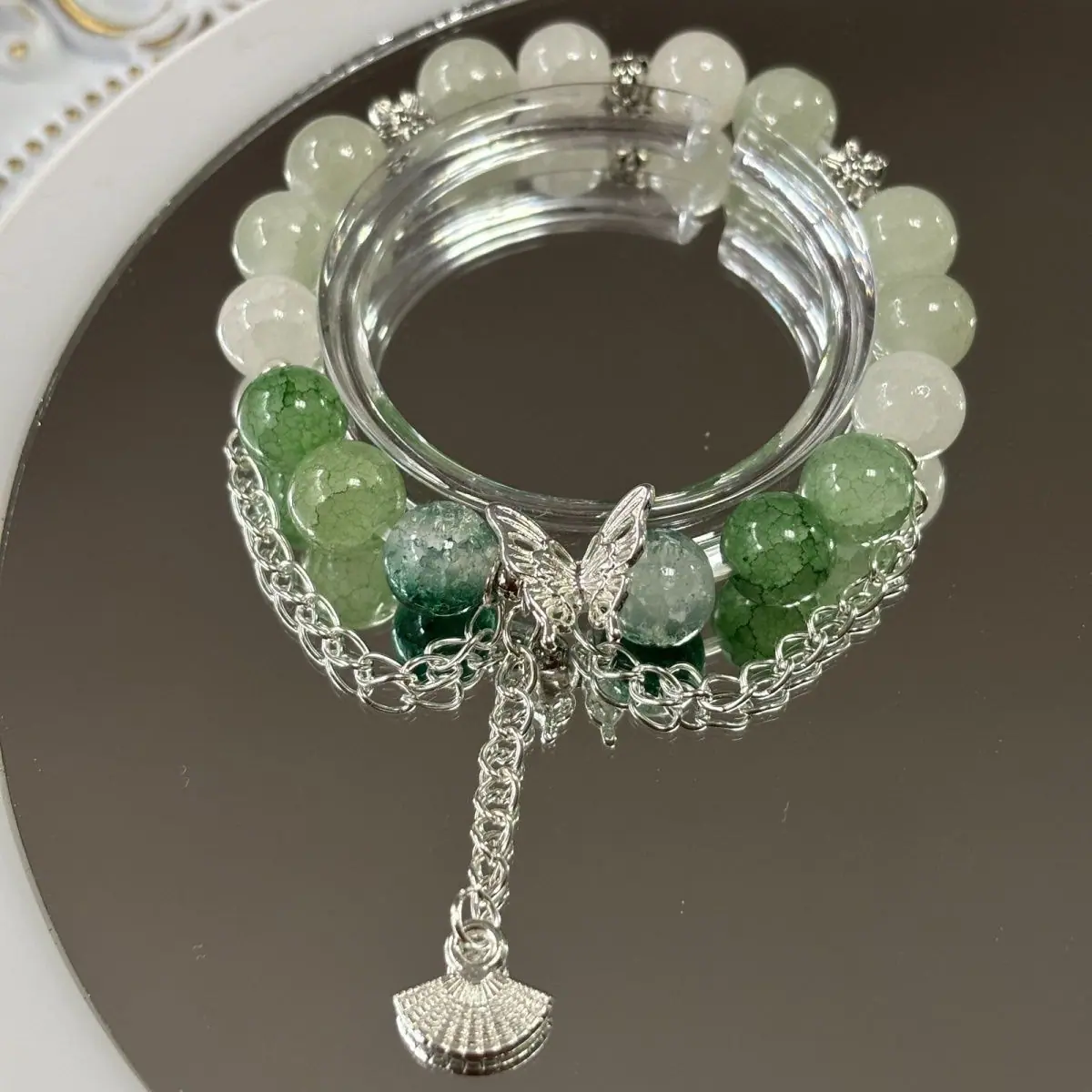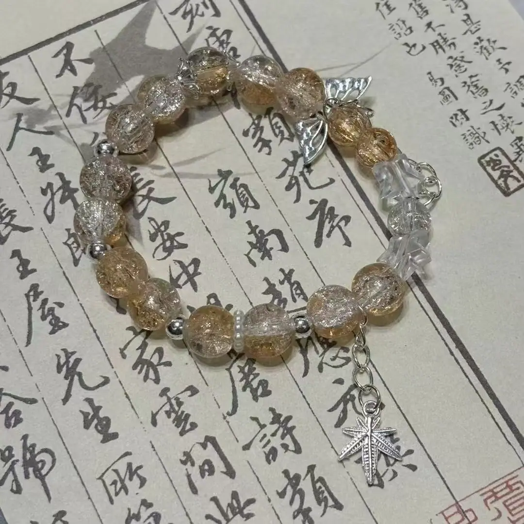 Nueva Pulsera Super Hada Espíritu Mariposa Perla Hielo Transparente Diseño Ins Mariposa Bicolor Pulsera Combinable para Estudiantes