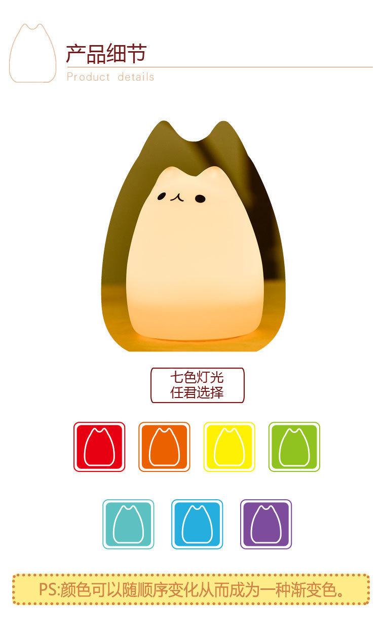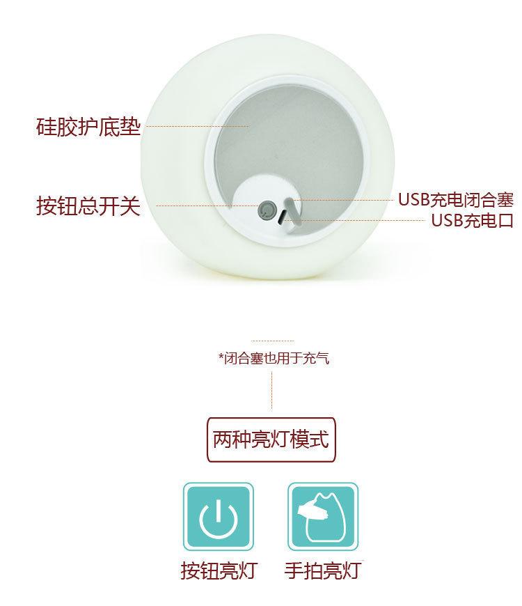 Cambios de luz: Encienda amarillo cálido, toque una vez, la luz cambia a siete colores en tres segundos; toque dos veces, permanece en el color al tocar; toque dos veces, la luz se apaga