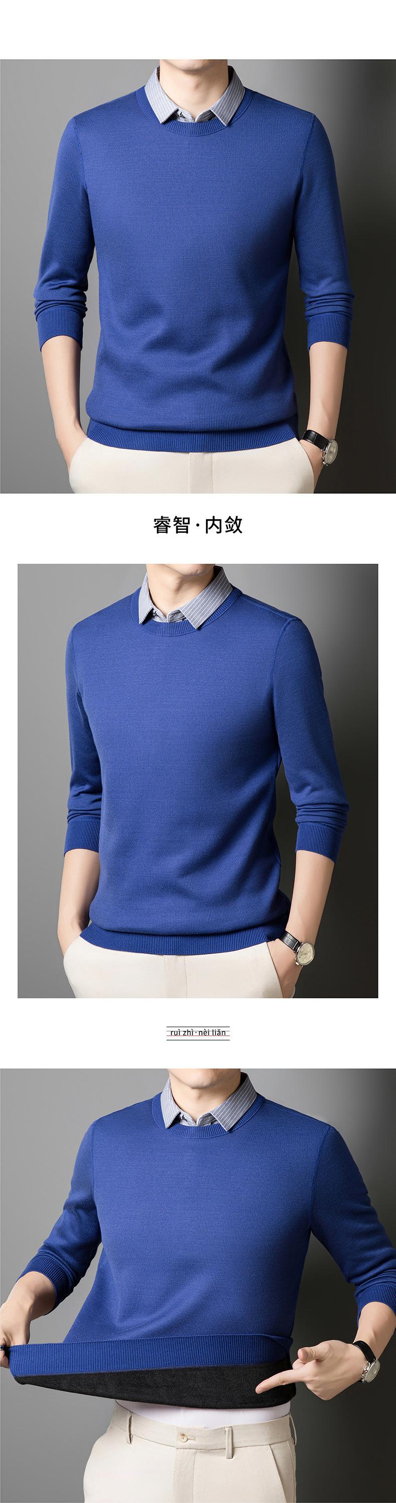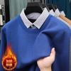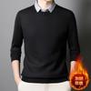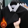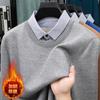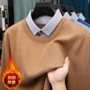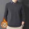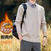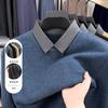 Suéter para hombre con forro polar, falso de dos piezas, otoño e invierno 2025, nuevo, grueso, cálido, con solapa, jersey, base, camisa de punto para hombre
