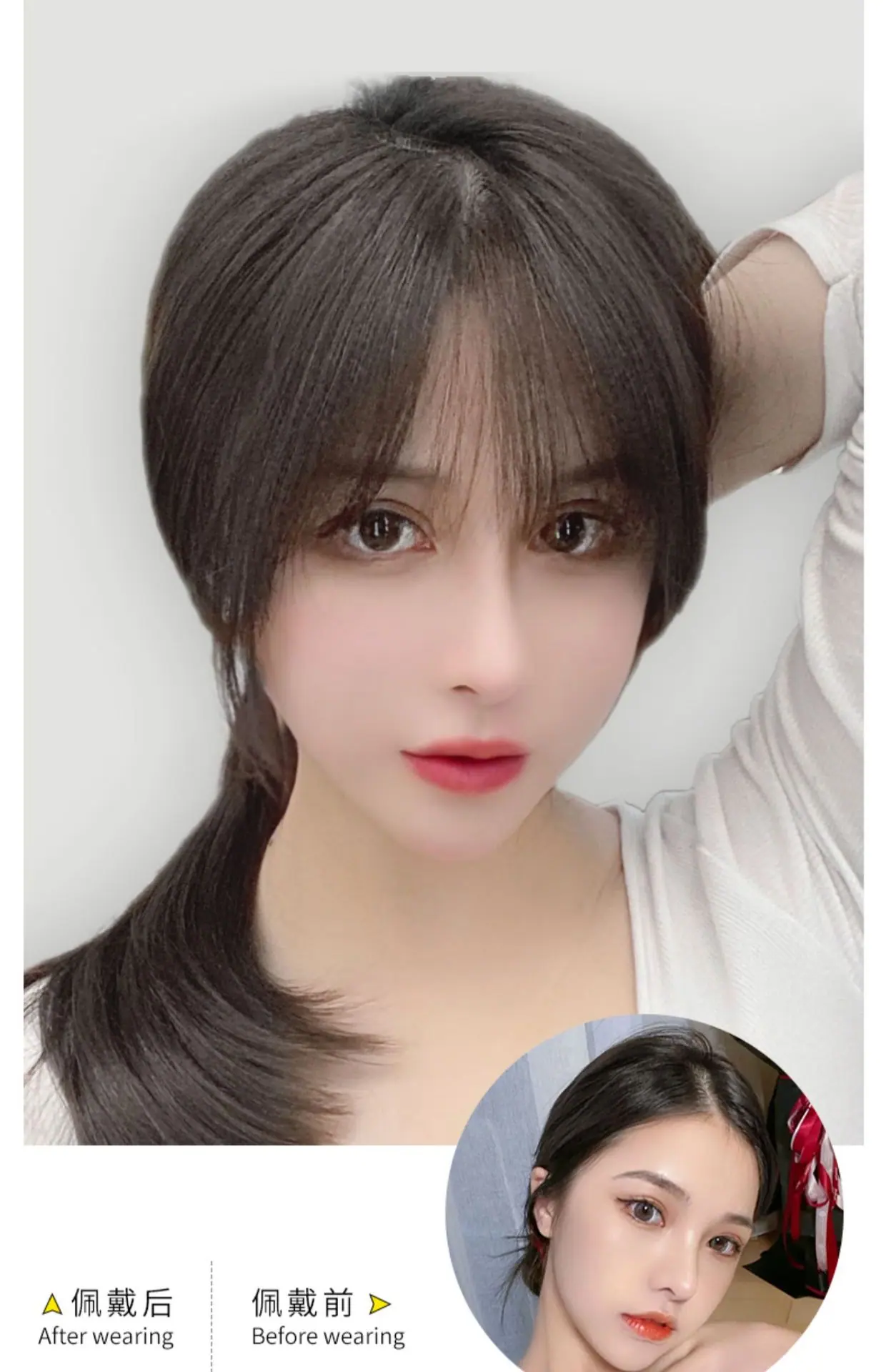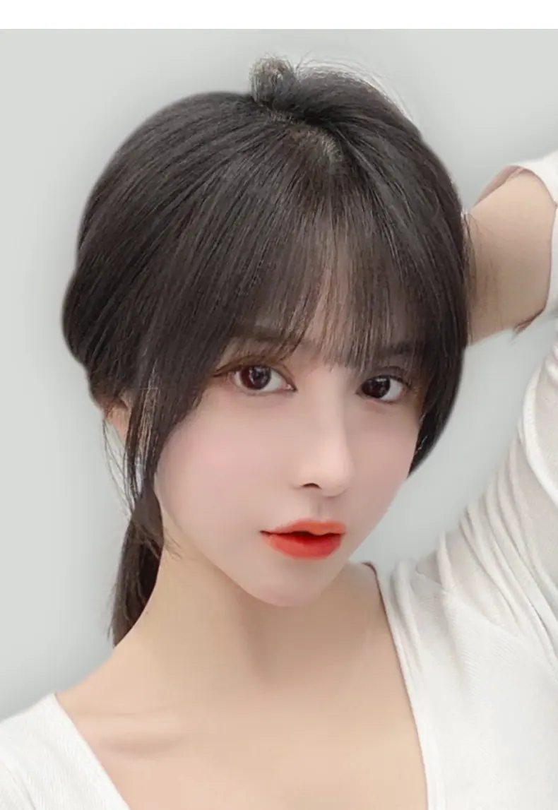 Flequillo Francés 3D Simulación de Cabello Natural Invisible Cubre Cabello Blanco Postizo Superior Mujeres