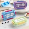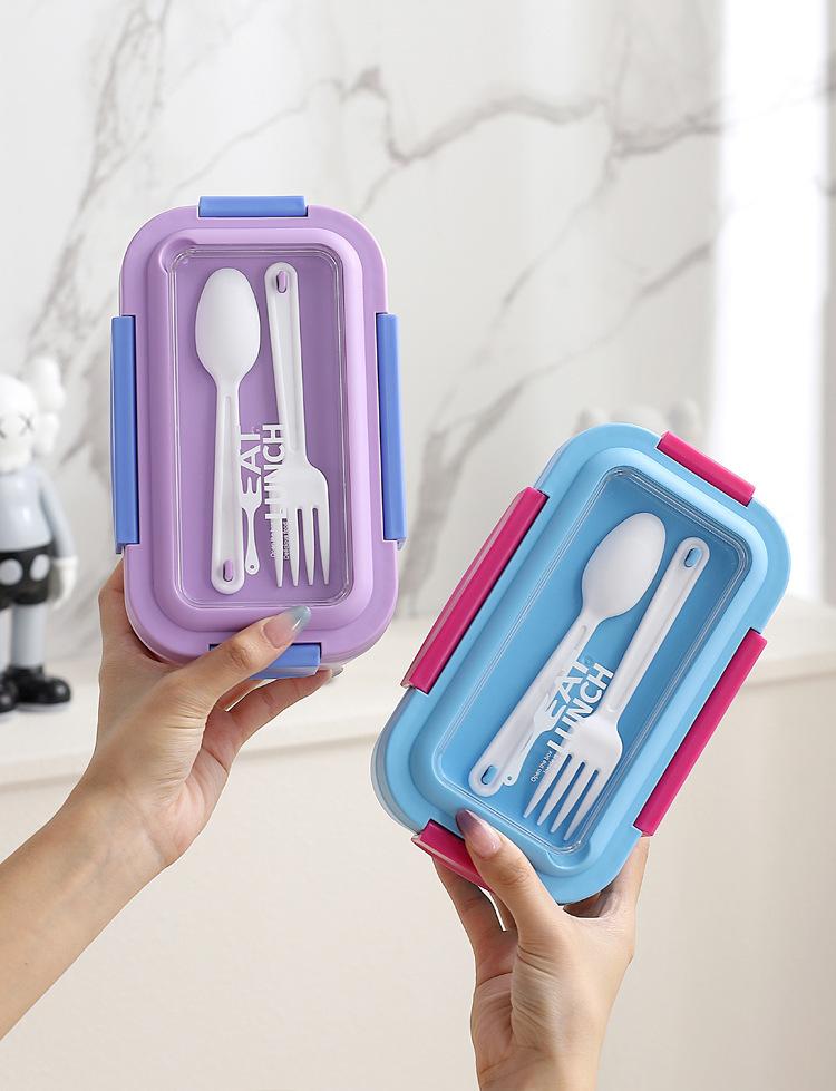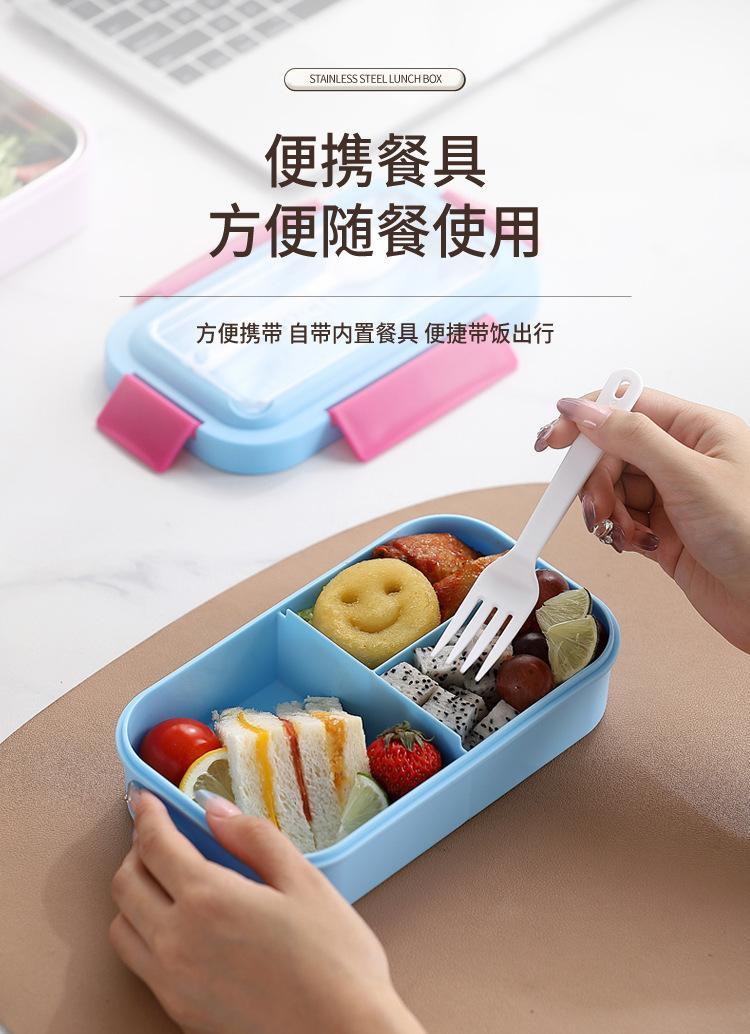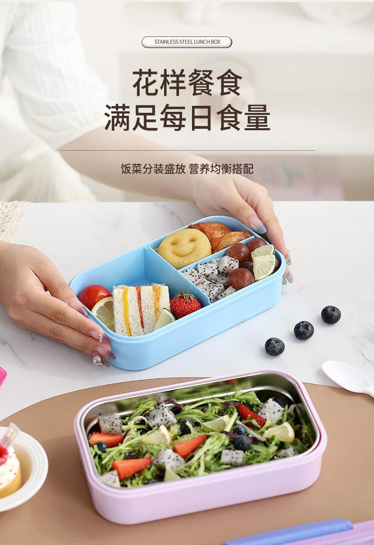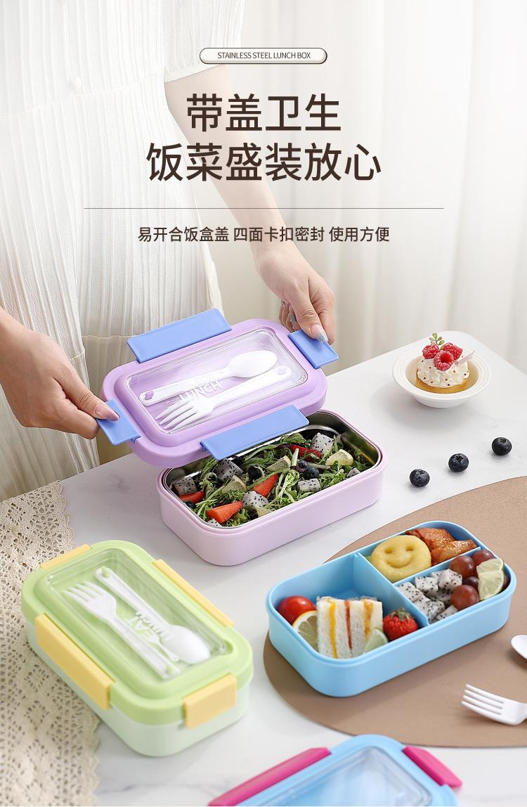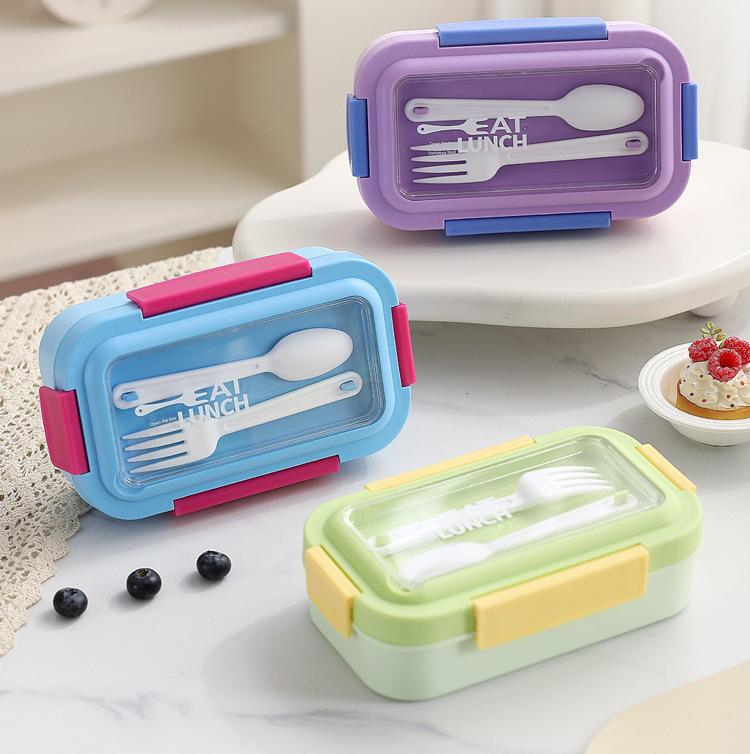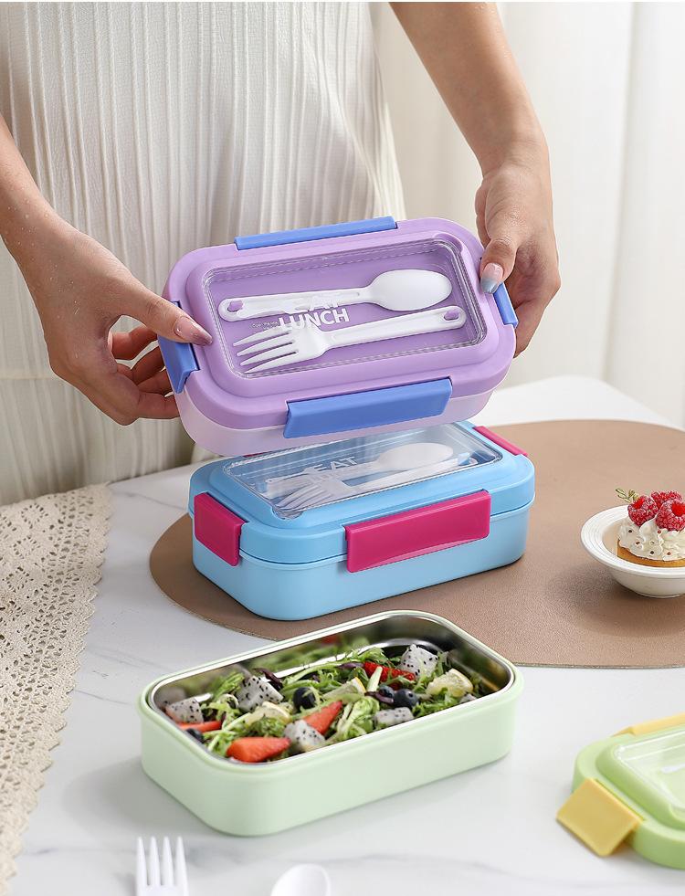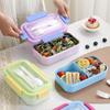 Lonchera de tres compartimentos con bloques de color, caja bento portátil para trabajadores de oficina, lonchera apta para microondas, lonchera de plástico