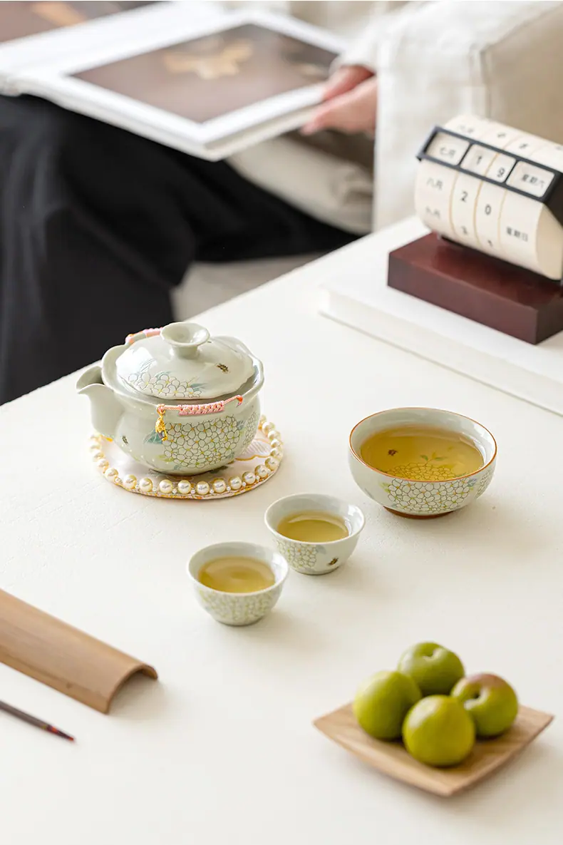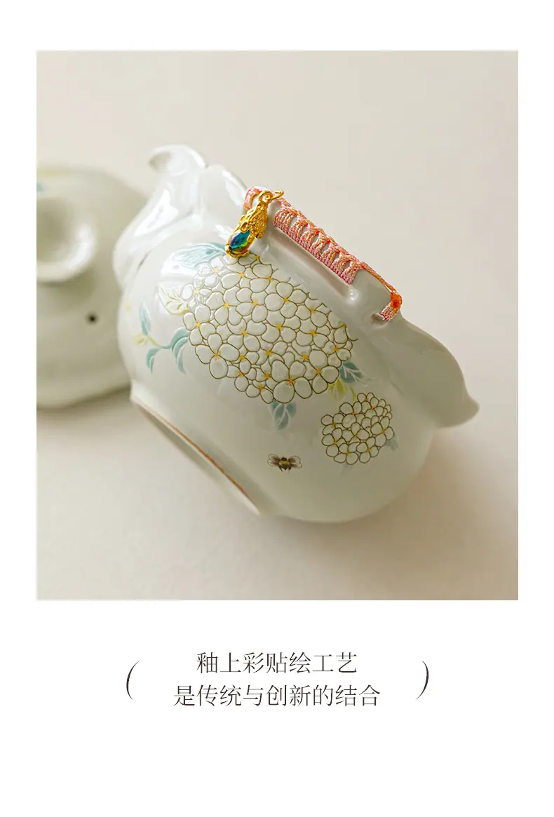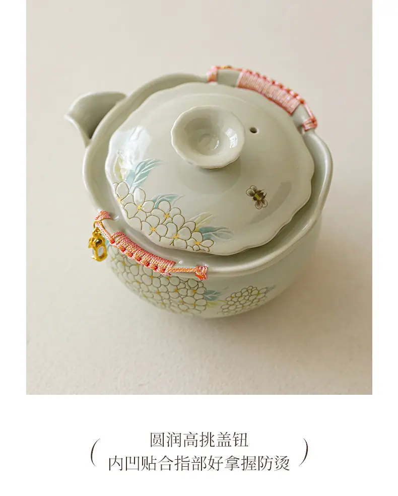 Tetera de Hortensia de Fábrica Tetera de Ceniza de Madera Maceta Baoping Tetera de Cerámica Juego de Té Kung Fu Tetera Anti-Escaldado con Agarre Manual Tetera Individual