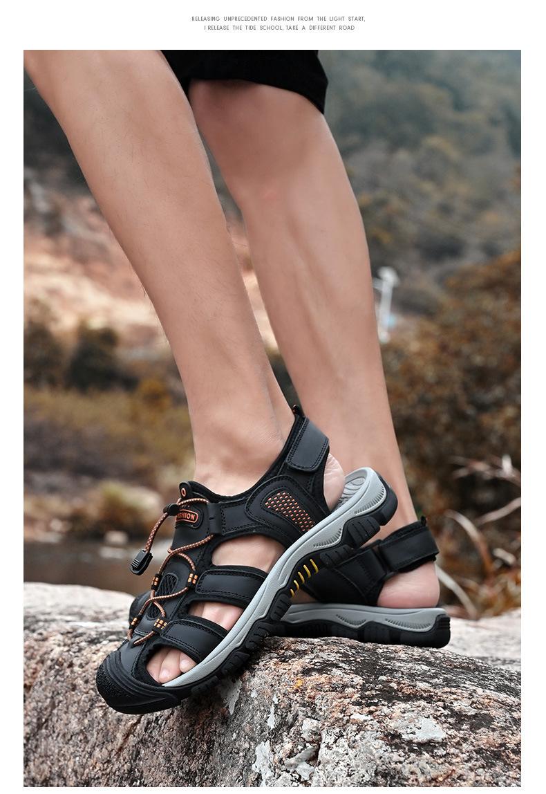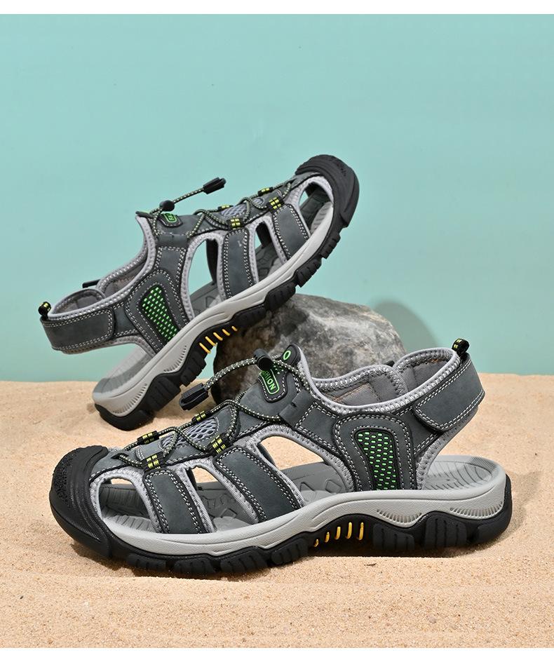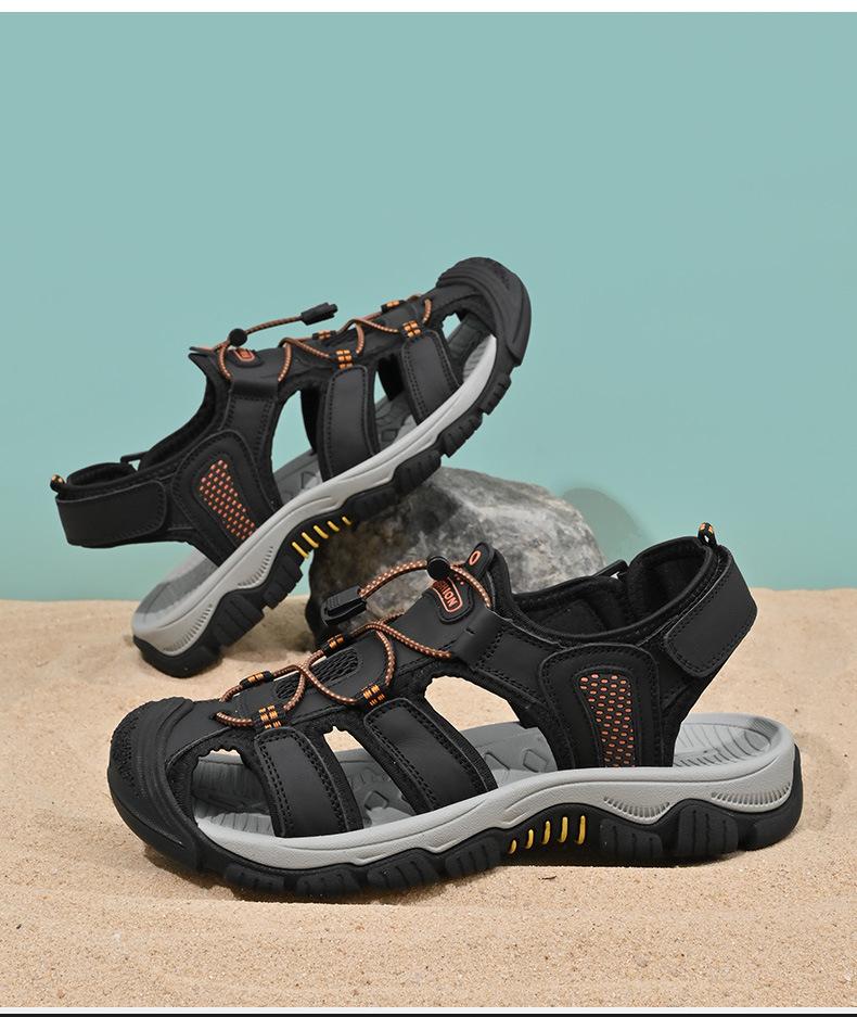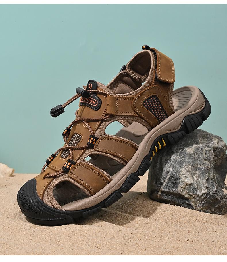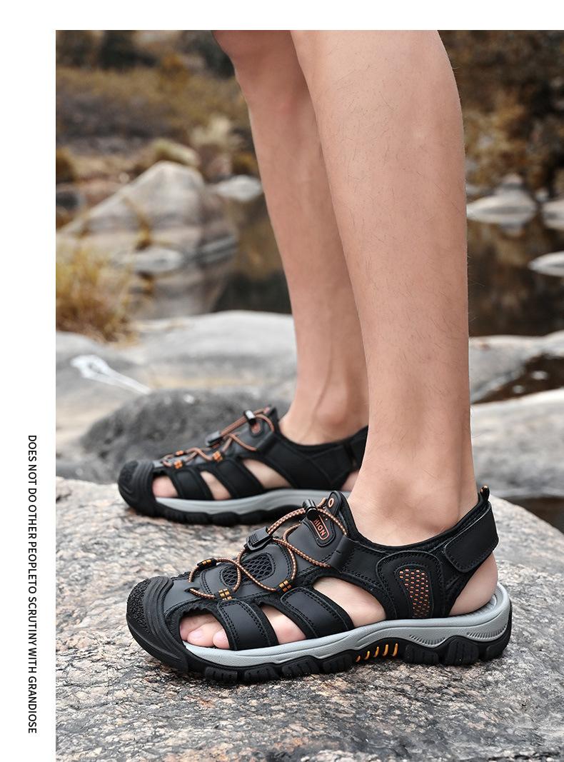 Sandalias de moda transfronterizas para hombre, nuevas, transpirables, zapatos de playa para hombre, marea, deportes al aire libre, capa superior de piel de vaca, punta cerrada, zapatos casuales