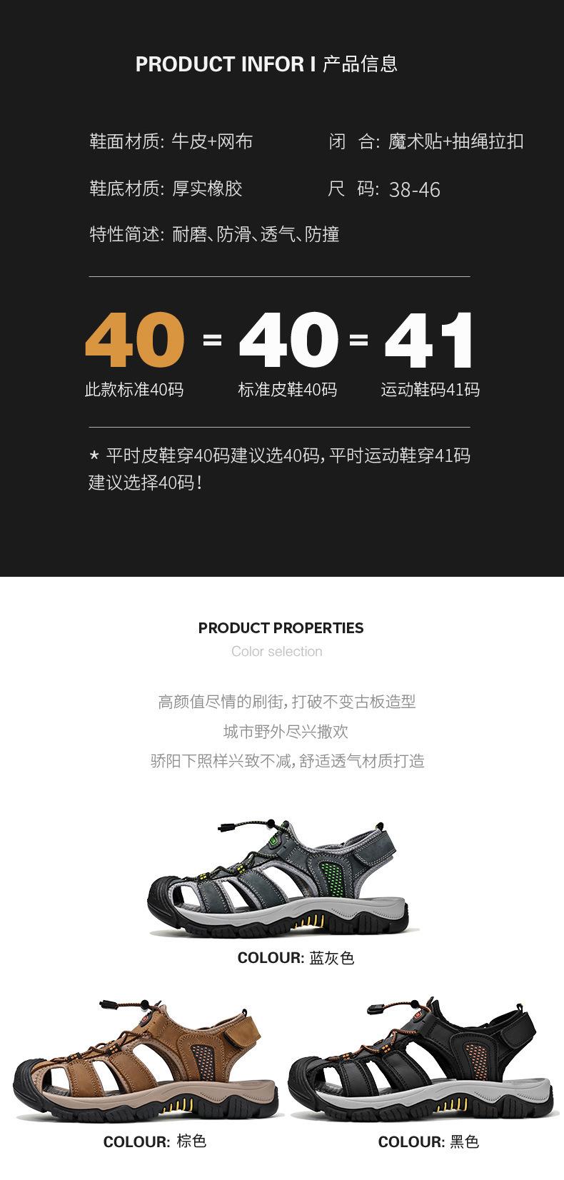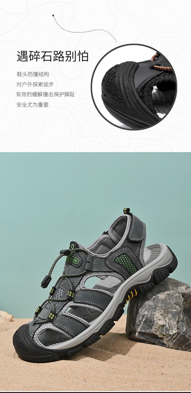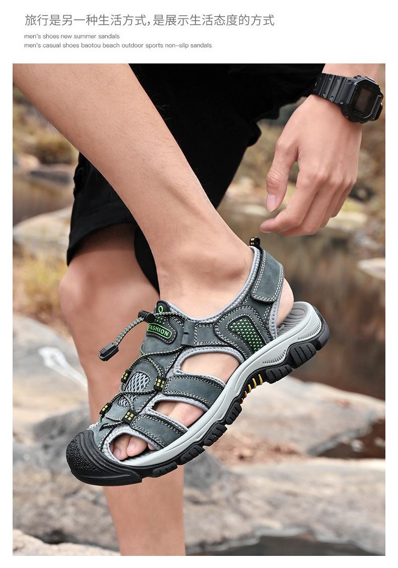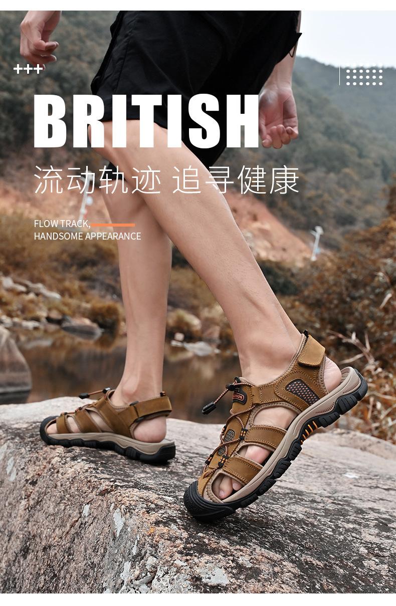 Sandalias de moda transfronterizas para hombre, nuevas, transpirables, zapatos de playa para hombre, marea, deportes al aire libre, capa superior de piel de vaca, punta cerrada, zapatos casuales