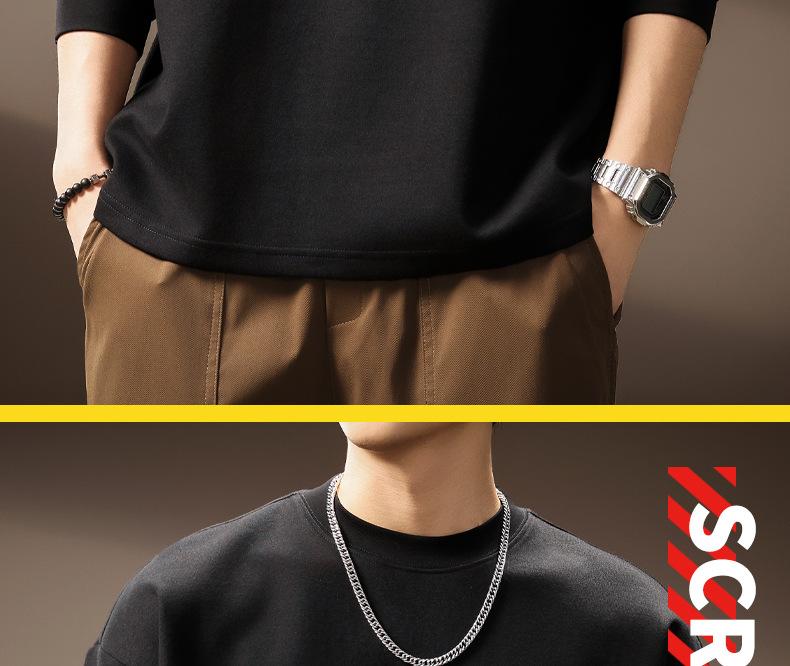 Compra Playera de Manga Larga de Alta Gama 300g Peso Pesado Moderna para Hombre, Nueva Otoño Color Sólido Simple Holgada Casual Camiseta Base Top al por mayor en Joom.pro