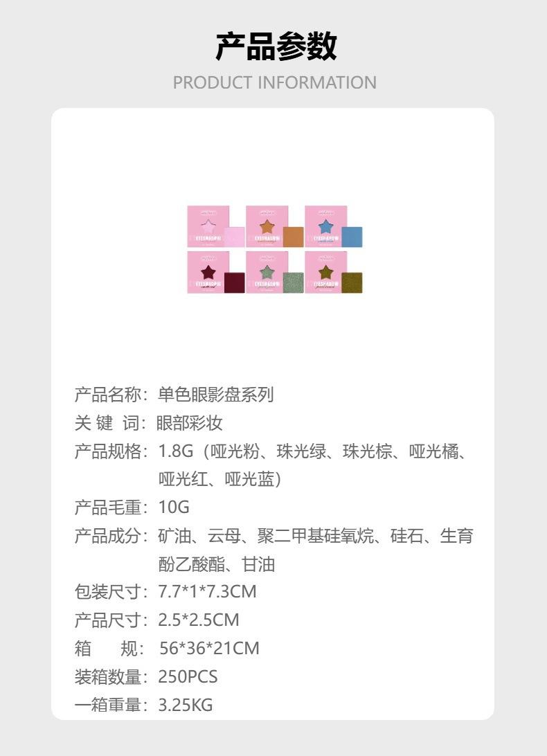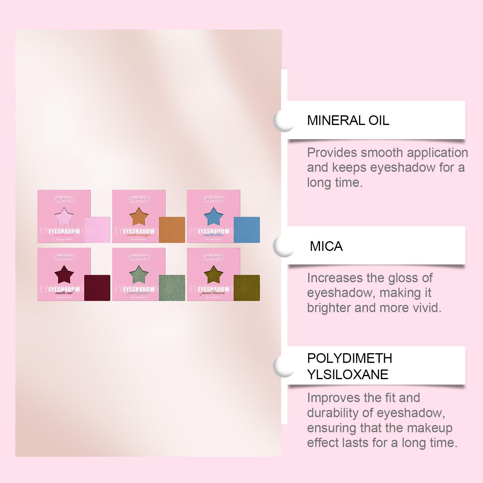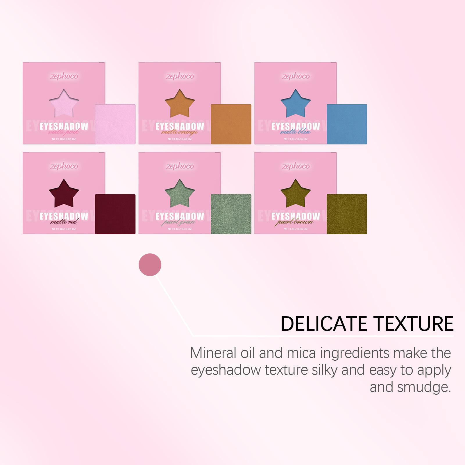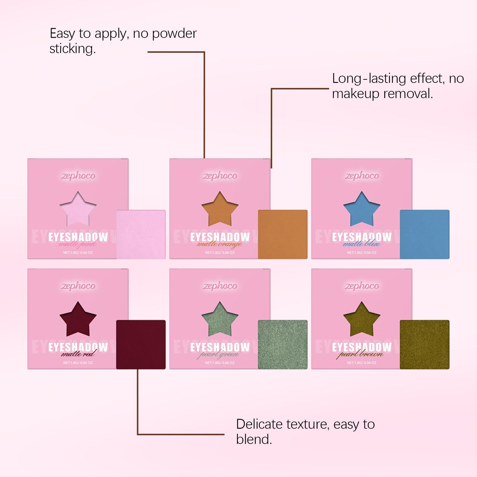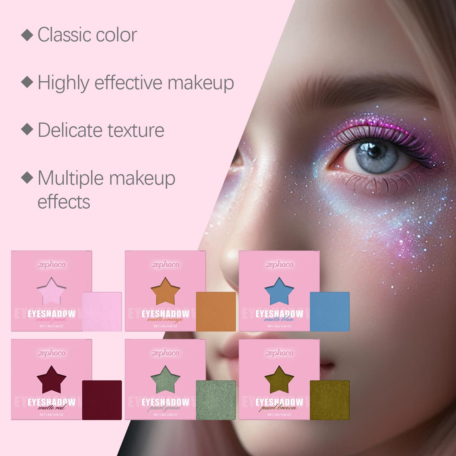 Serie de Paletas de Sombras de Ojos Monocromáticas Zephoco, Desarrollo de Color Natural, Larga Duración, No Fácil de Remover el Maquillaje, Aplicación Portátil y Retoque de Sombra de Ojos