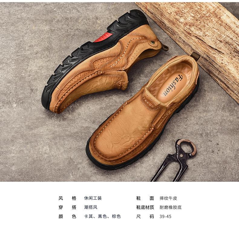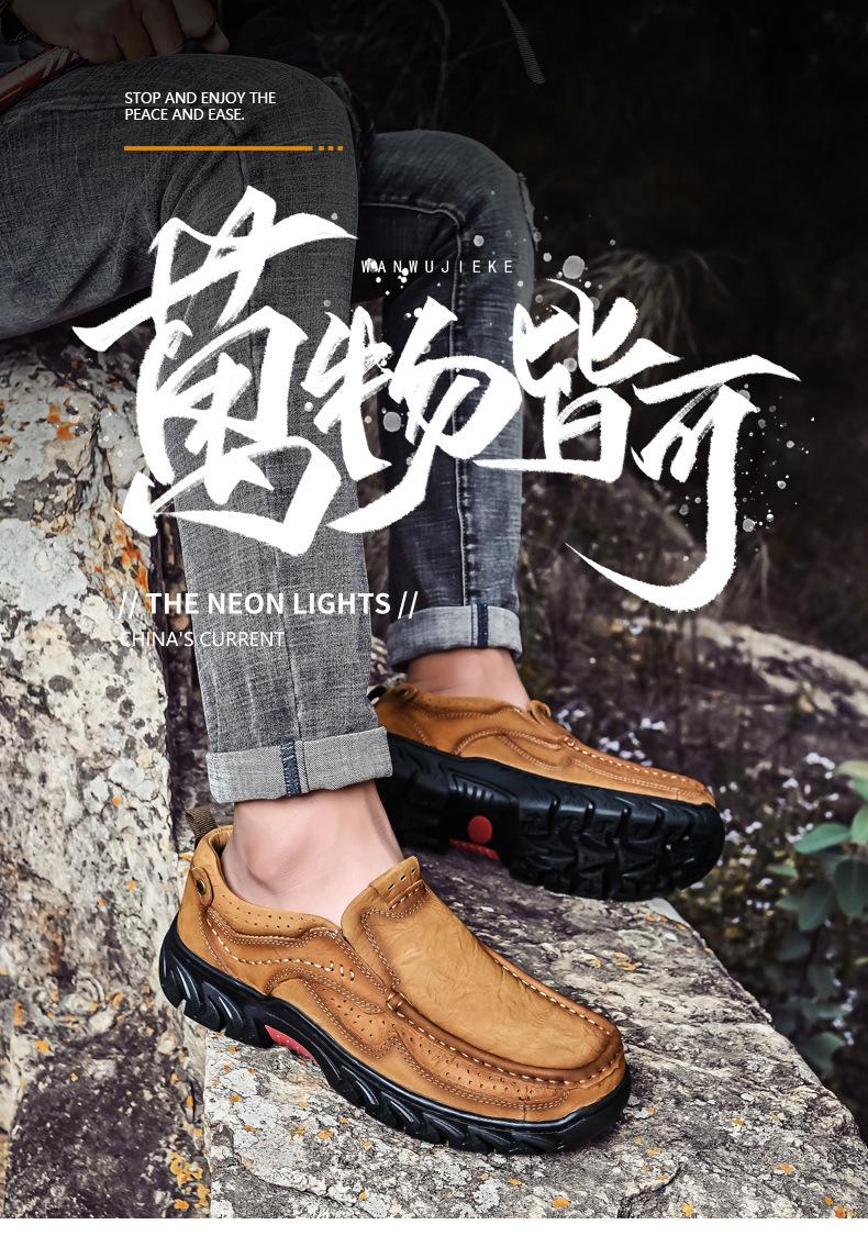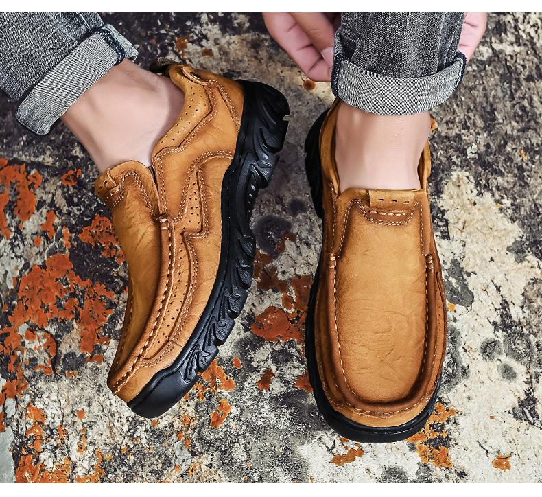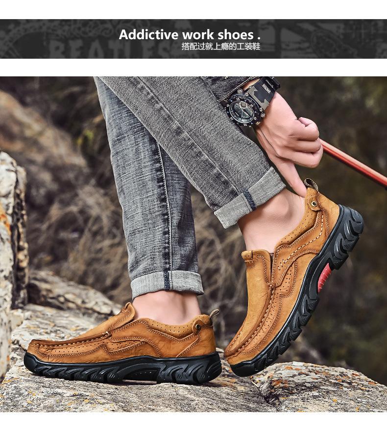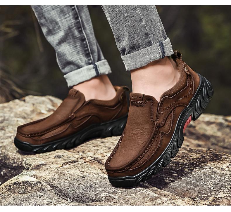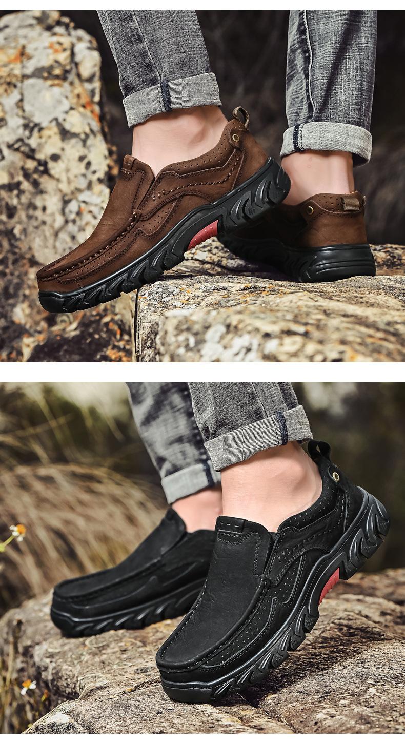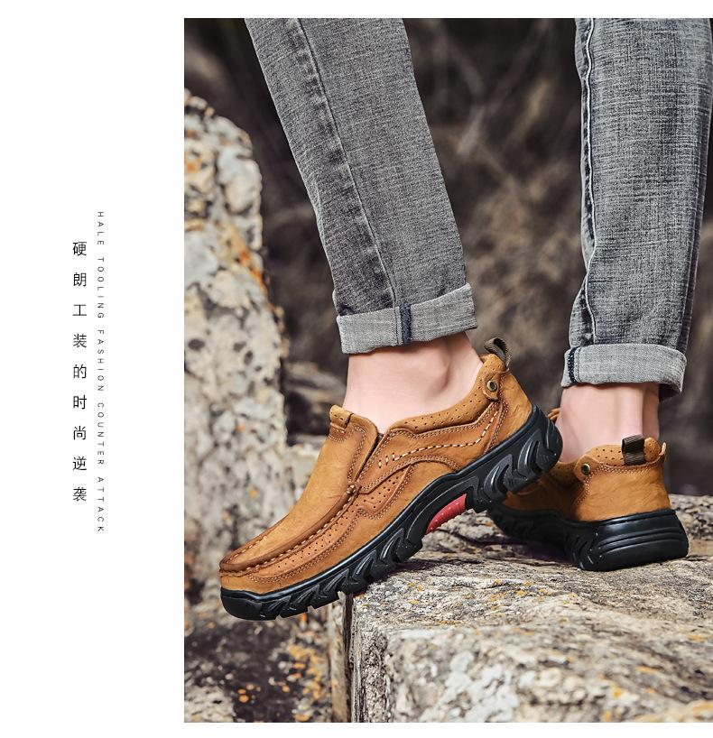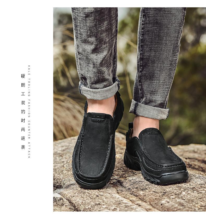 Zapatos de Cuero de Talla Grande para Hombre para Senderismo al Aire Libre Zapatos de Cuero Genuino Casuales de Suela Gruesa Antideslizantes Moda Versátiles Primavera y Otoño Zapatos de Cuero para Hombre